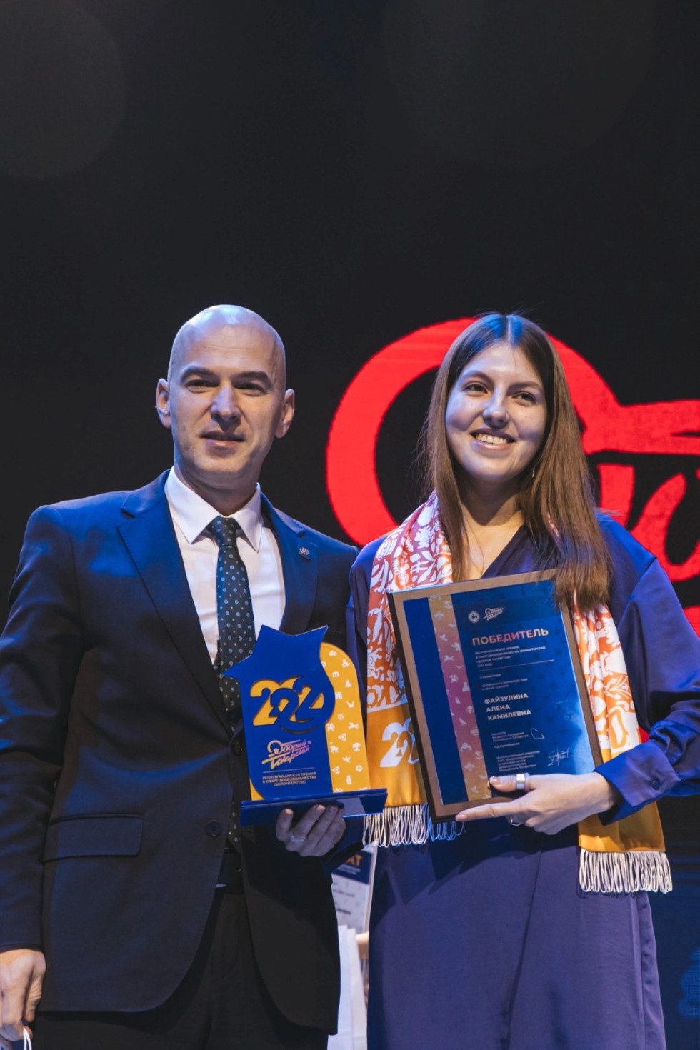 Файзулина Алена Камилевна, студентка группы 14.5-950, направление Туризм стала победителем республиканской премии в сфере добровольчества (волонтерства) «Добрый Татарстан» в номинации «Доброволец (волонтер) года в сфере туризма»