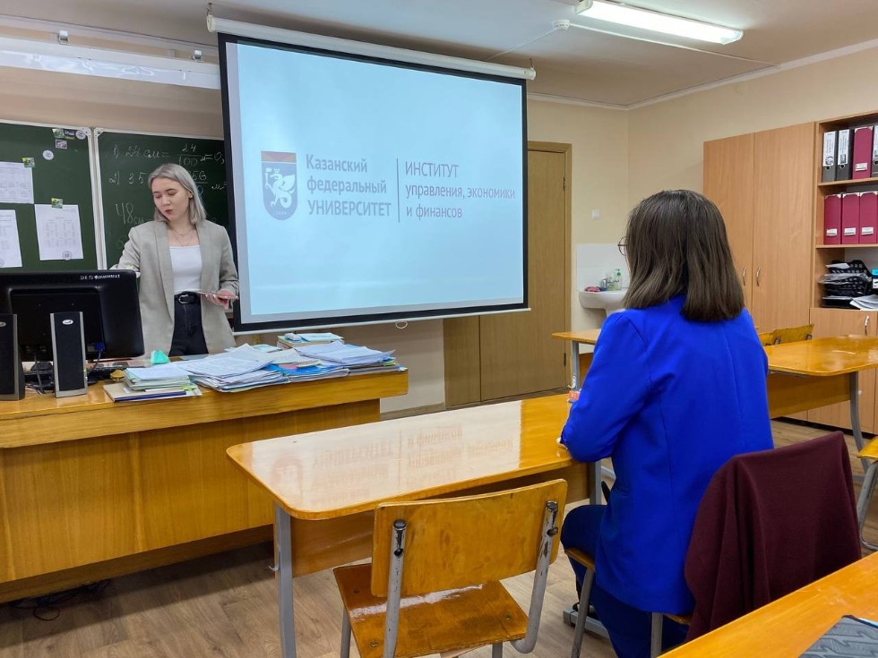 Гаязова Альбина Рамилевна, сходила в свою школу - МБОУ Арскую гимназию №5 в РТ и провела лекцию по профориентации для 10, 11 классов. Представила наш институт и рассказала о возможностях поступления в КФУ. Многие заинтересовались направлениями, которые есть в ИУЭФ и задумались о поступлении.
