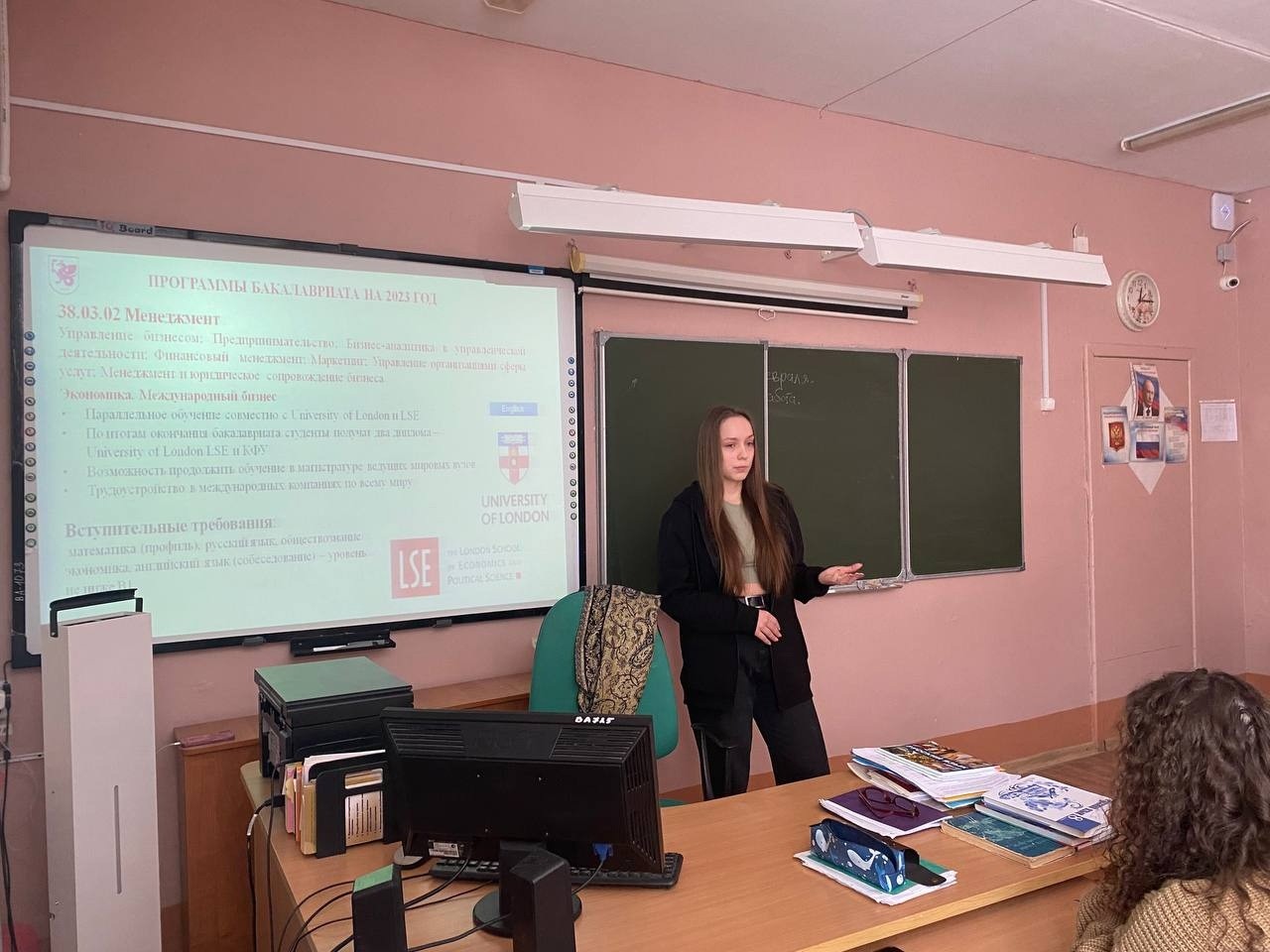 Вахрушева Мария рассказала учащимся 9-11 классов МБОУ "Мостовинская СОШ" Удмуртской Республики Сарапульского района про Институт управления, экономики и финансов Казанского Федерального Университета, а также подробнее о программе бакалавриата педагогического образования география и экология. В ходе встречи ребята задавали различные вопросы.