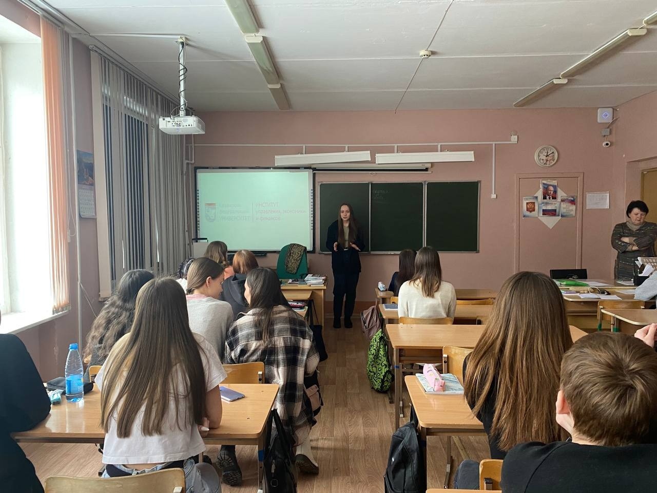 студентка 2 курса КФУ педагогического образования география и экология Бесчастнова Влада рассказала учащимся 11 класса МБОУ "Средняя школа № 18" г. Дзержинск Нижегородской области про Институт управления, экономики и финансов Казанского Федерального Университета, а также подробнее о программе бакалавриата педагогического образования география и экология. В ходе встречи ребята задавали различные вопросы.