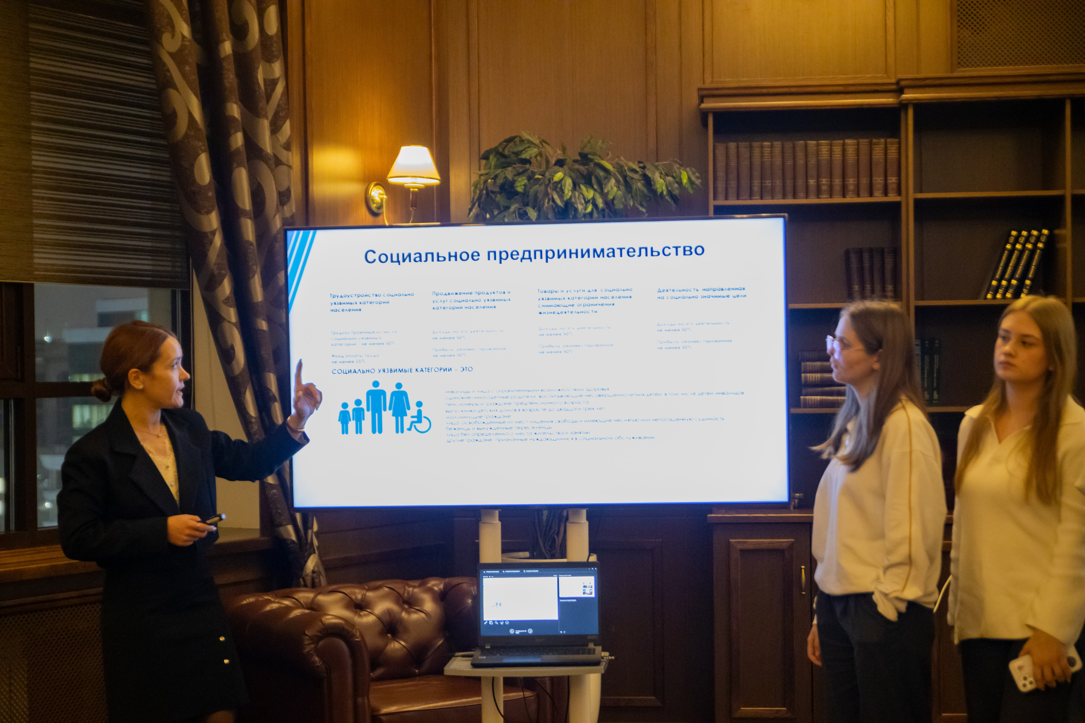 17 декабря в профессорском зале Института управления, экономики и финансов КФУ состоялась встреча с делегацией 8-9 классов Международной школы Бала-Сити города Казань. Спикерами выступали директор ИУЭФ Ахметшина Алсу Ринатовна и доцент кафедры менеджмента в социальной сфере Зиганшина Зухра Рашидовна. Основная цель мероприятия — ознакомить будущих абитуриентов с портфелем образовательных программ нашего института. Ребята приняли участие в деловой игре по модели «Social lean canvas» на основе целей устойчивого развития ООН, и представили свои проекты по устранению острых социальных проблем, предложив варианты их решения. В результате игры ребятами были предложены следующие идеи решения социальных проблем: создание рабочих мест и коливинга для маргинальных слоев населения, создание интеллектуальной аптеки с интеграцией бота для оценки качества