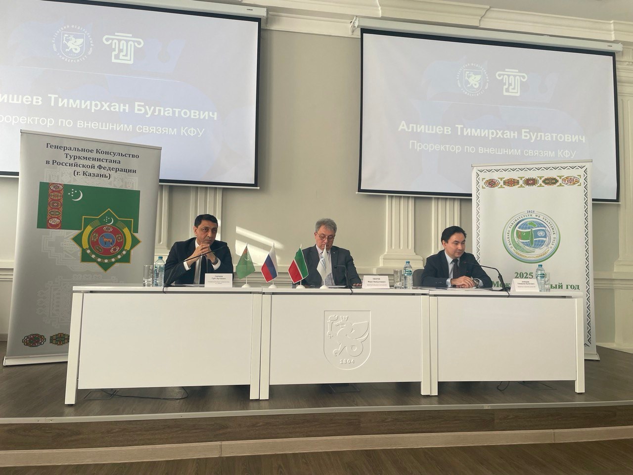 Генеральный консул Туркменистана в г. Казани Гуйч Гараев встретился со студентами институтов КФУ в Елабуге и Набережных Челнах, приехавших сюда учиться из Туркменистана. Во встрече принял участие проректор по внешним связям КФУ Тимирхан Алишев.