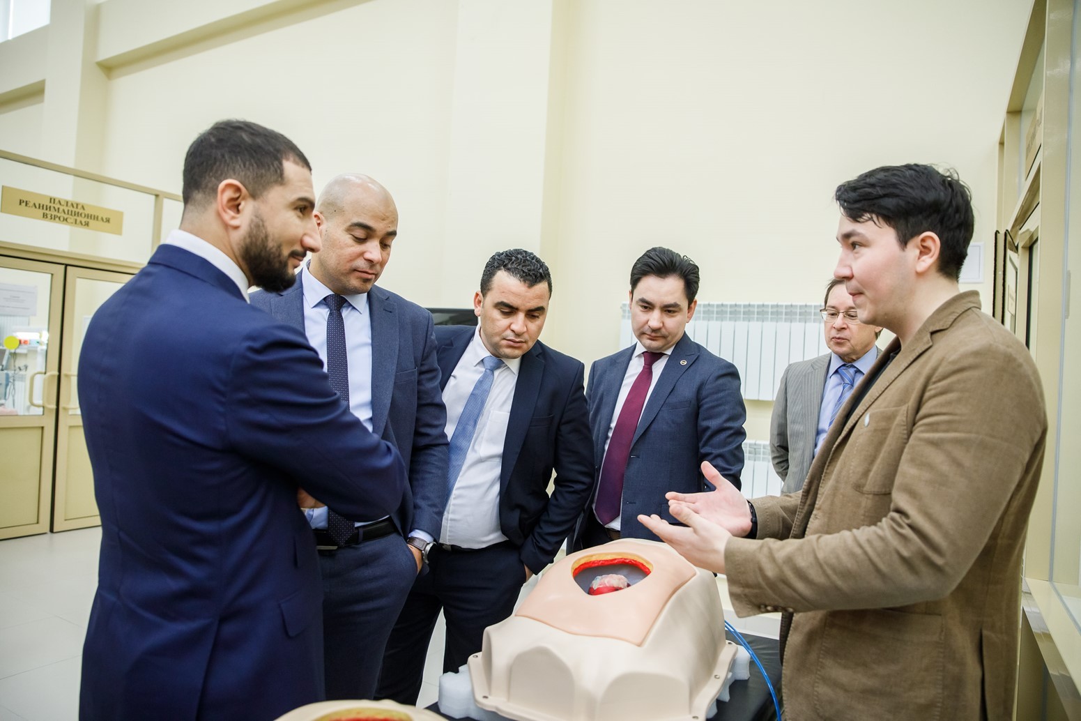 В ходе визита гости посетили Симуляционный центр Института фундаментальной медицины и биологии. Далее состоялась презентация Казанского университета, которую провел Тимирхан Алишев. Рассказывая об истории университета и его научной, образовательной деятельности, современной инфраструктуре, акцент был сделан на приоритетных векторах, в том числе реализации программы стратегического академического лидерства «Приоритет–2030», проекте геномных, постгеномных технологий здоровьесбережения и повышения биологической грамотности для устойчивого развития общества.