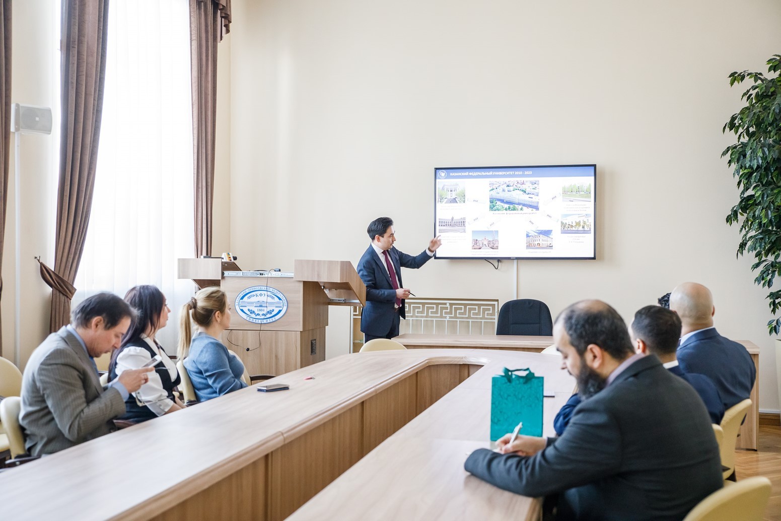 Гостей сопровождал проректор по внешним связям Тимирхан Алишев. От КФУ участие в мероприятии приняли заместитель директора по лечебной работе и базам практик Раушания Гайфуллина, заместитель директора по международной деятельности ИФМиБ Альбина Валеева.