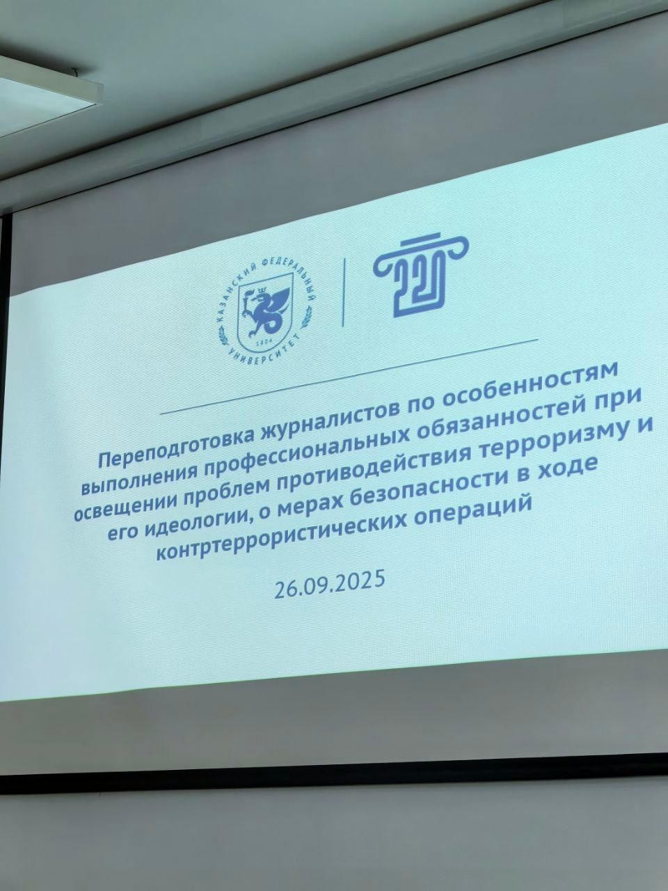 26 сентября 2025 года на кафедре конфликтологии Казанского федерального университета при поддержке Центра медиации, урегулирования конфликтов и профилактики экстремизма успешно завершилась программа переподготовки для журналистов Республиканского агентства по печати и массовым коммуникациям «Татмедиа». Мероприятие было посвящено особенностям работы журналистов при освещении проблем противодействия терроризму и его идеологии, а также мерам безопасности в ходе контртеррористических операций. Целью программы стало повышение профессиональной компетентности сотрудников СМИ в вопросах противодействия идеологии терроризма и экстремизма, а также формирование навыков безопасного и ответственного освещения данной тематики.