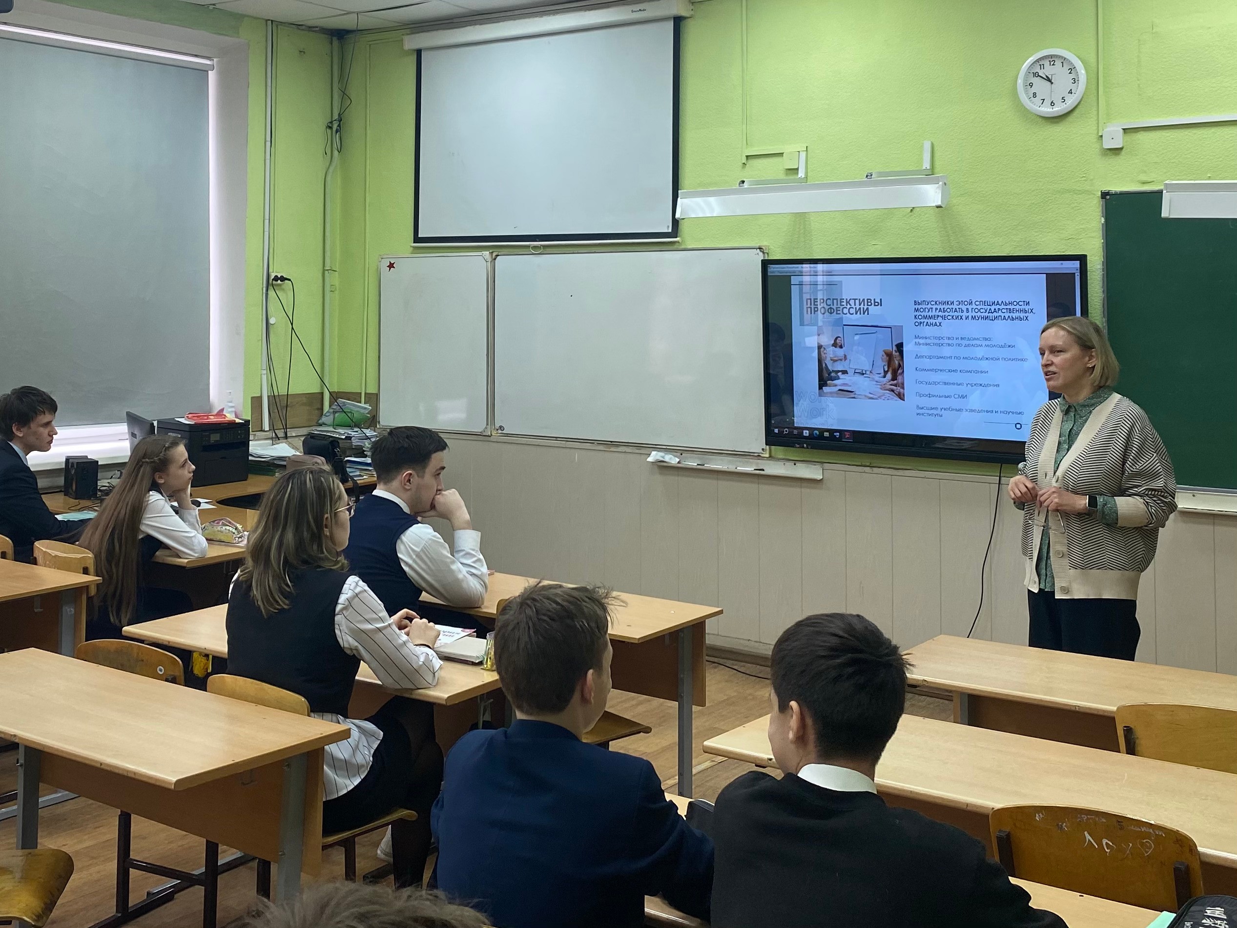 Они рассказали обучающимся о таких направлениях как «Социология» и «Организация работы с молодежью». Жанна Владимировна во вступительной речи перед школьниками охарактеризовала актуальные процессы и проблемы современности, которые сегодня изучают социологи и специалисты в сфере организации работы с молодежью - цифровизация, демографическая ситуация, миграционная политика, развитие духовно-нравственных ценностей, патриотизма и ряд др. Алексей Хохлов поделился информацией об опыте проведения исследований для органов государственного и муниципального управления в Республике Татарстан в сфере экологической проблематики и аналитики медиа.