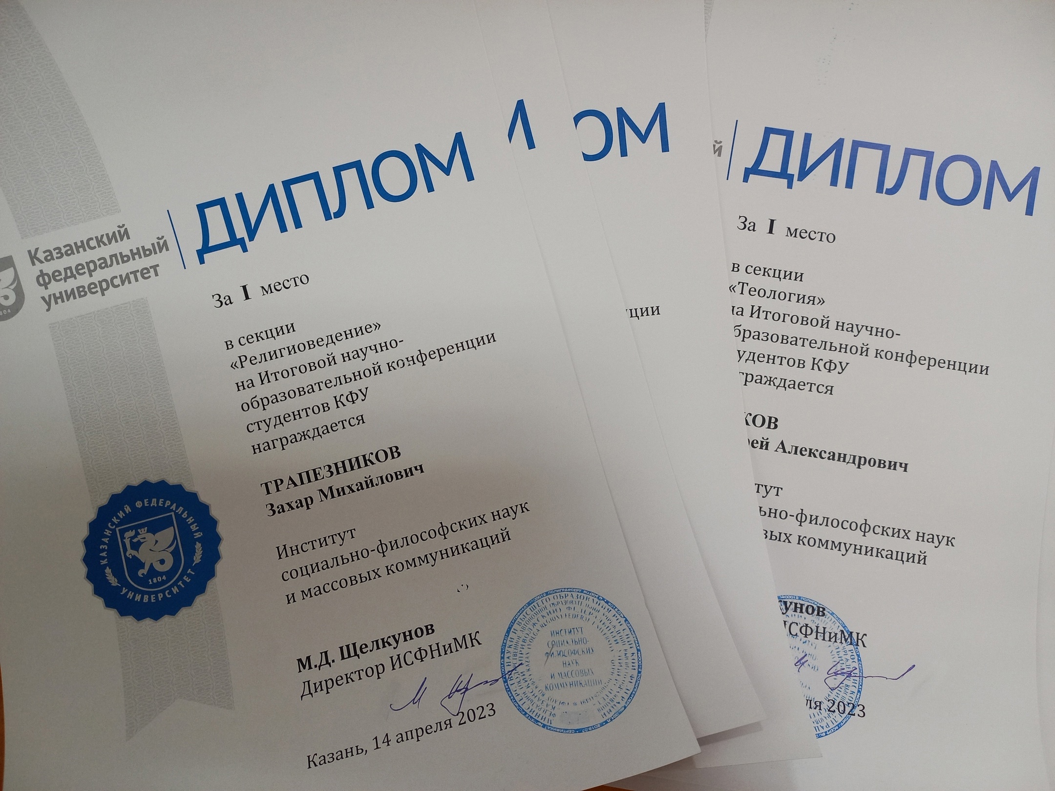 14 апреля в рамках Итоговой научно-образовательной конференции студентов на кафедре религиоведения прошло заседание секций "Религиоведение" и "Теология". В общей сложности в качестве докладчиков участие в работе конференции приняло более 20 студентов кафедры религиоведения (от бакалавров 1 курса до магистров 2 года обучения). Жюри обеих секций отметило очень высокий уровень докладов, каждый из которых вызвал многочисленные вопросы и активное обсуждение.