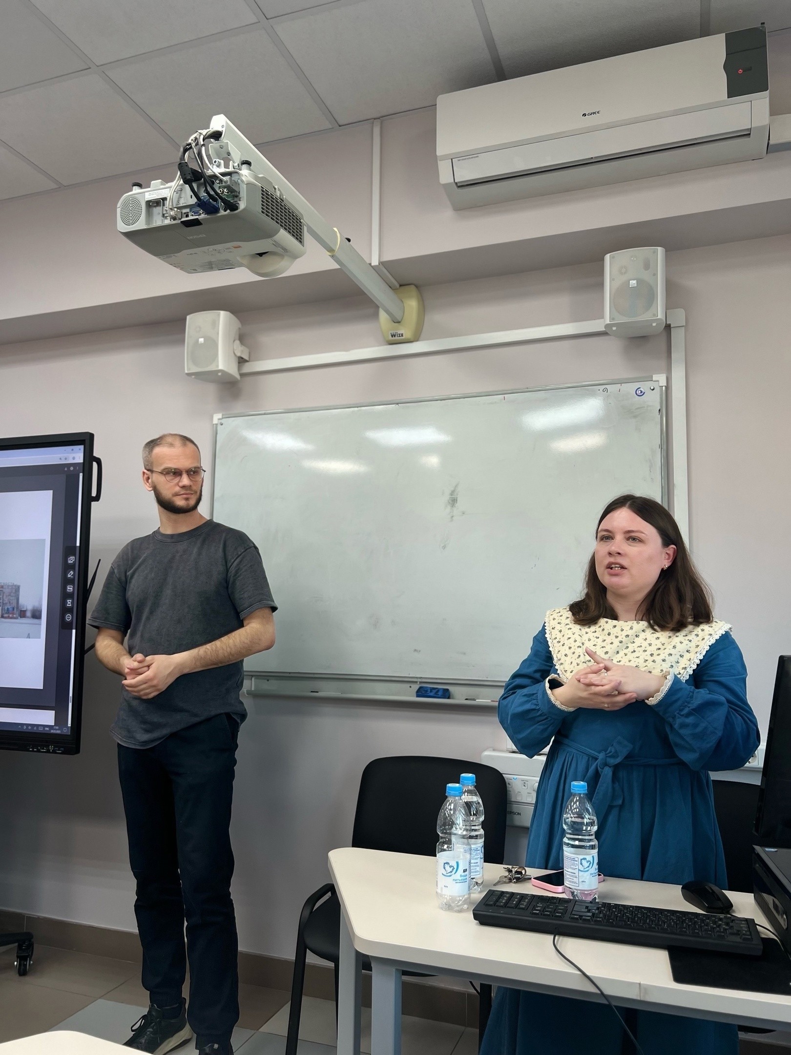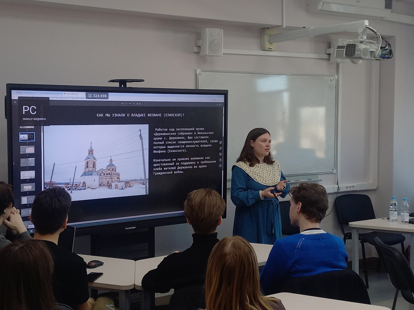 Презентацию провели Ольга Павлова - руководитель проекта, режиссер фильма и Дмитрий Прозоров - оператор-постановщик фильма. Они рассказали студентам о модели архивного поиска, которую затем можно применить каждому., а также сквозь историю владыки Феофана (Еланского) и путешествий съемочной группы провели осмысление вышеупомянутых исторических событий первой трети двадцатого века.