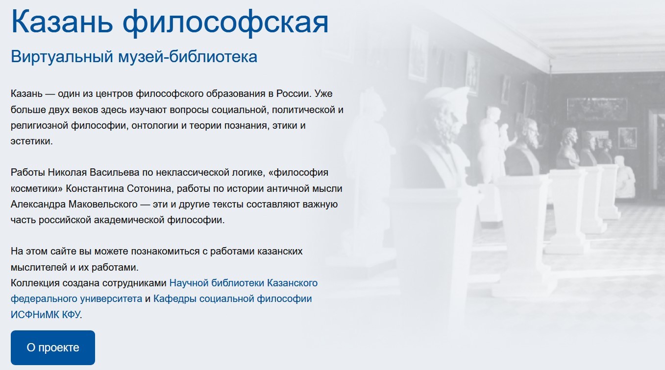Следить за реализацией проекта Виртуальный музей-библиотека "Казань философская" можно на сайте.