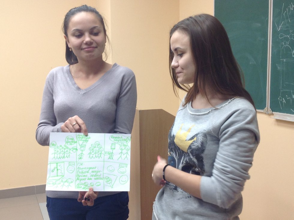 В качестве активного метода просветительской программы в рамках мероприятия участникам дискуссии была предложена к разработке технология комикса, используемая при работе со студентами по конструированию конфликтной проблемы и ее разрешению.