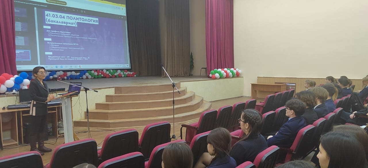 4 и 6 марта 2025 года кафедра политологии провела ряд профориентационных встреч с учениками 10 и 11 классов МБОУ «Лицей № 1», МБОУ «Гимназия № 10», МБОУ «СОШ № 11» и МБОУ «Многопрофильный лицей №18 имени М.В. Ломоносова» города Зеленодольска. Ассистент кафедры Мамадисоева Д.Н. рассказала школьниками о направлении обучения Политология, о профилях обучения, осуществляемых кафедрой, о возможных карьерных перспективах после окончания обучения по направлению. Ребят также традиционно интересовали вопросы об особенностях поступлении на бюджетную и контрактную формы обучения, о студенческой жизни в процессе обучения, об участии в культурных и спортивных мероприятиях вуза.