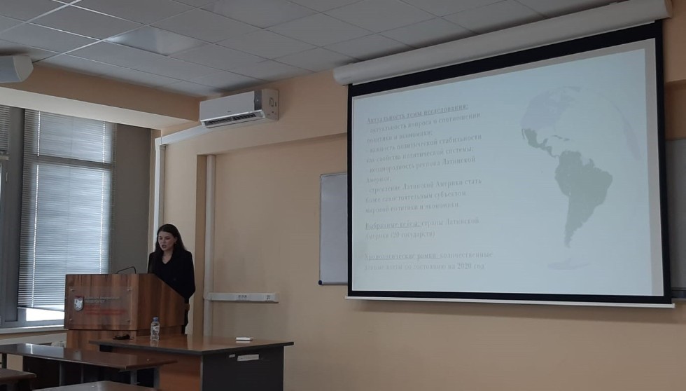 Жюри определило трех победителей – магистрант 1 года обучения Диана Киреева получила первое место, студенту 3 курса Марии Порубовой досталось второе место, и студент 3 курса Виктория Рочева заняла третье место. Диана Киреева в своем исследовании выявила основные факторы электоральной поддержки региональных партий Испании. О политической стабильности как факторе экономического развития в странах Латинской Америки рассказала Мария Порубова. Виктория Рочева представила результаты исследования в изучении роли института наблюдателей на парламентских выборах в Республике Татарстан.