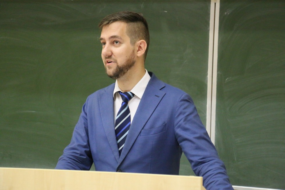 Сегодня на организационных собраниях первокурсников поздравил с Днём знаний проректор по цифровой трансформации и инновационной деятельности Казанского (Приволжского) федерального университета Дмитрий Пашин.