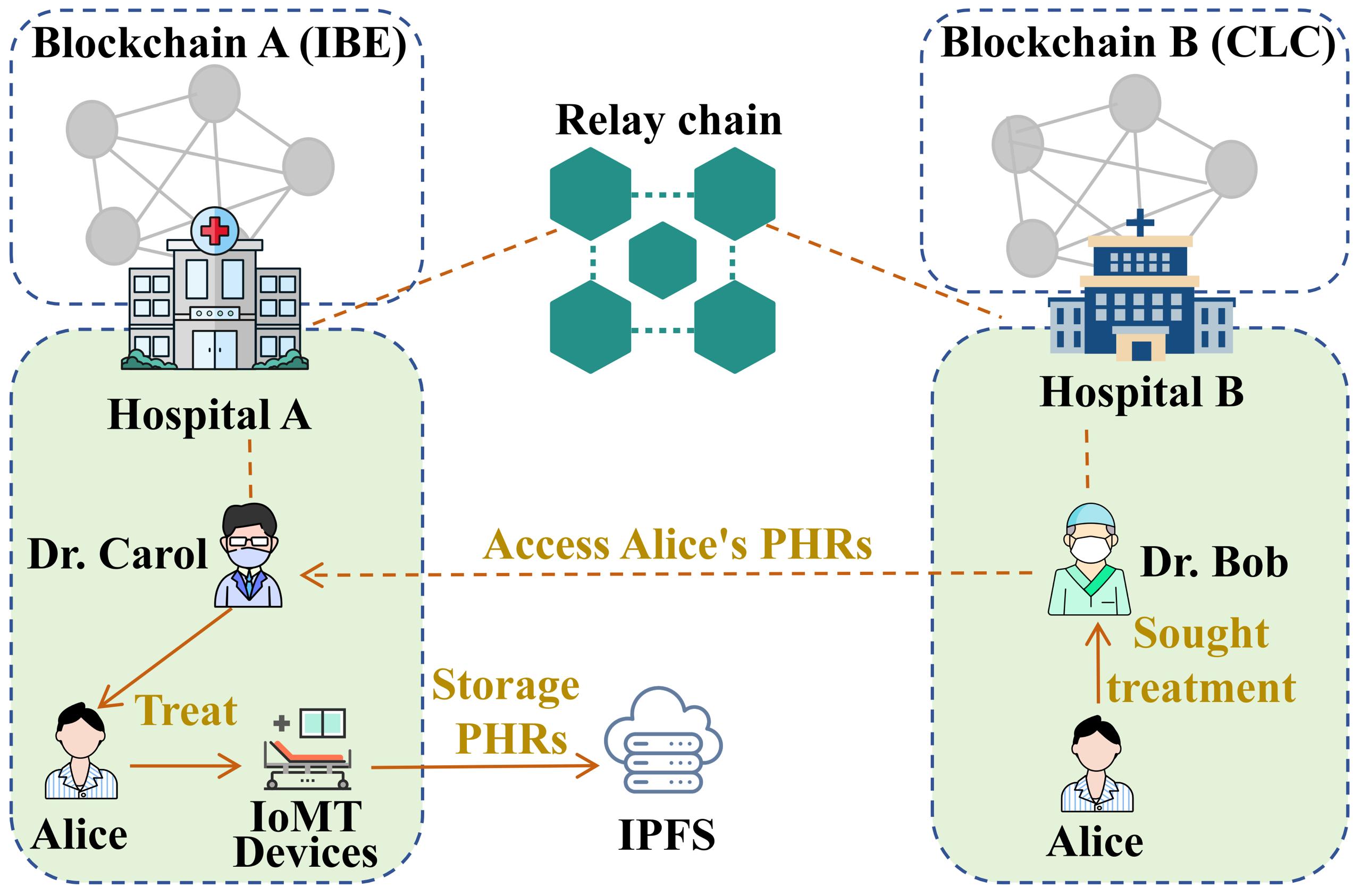 MedExChain — это система для безопасного обмена зашифрованными персональными медицинскими записями между разными блокчейнами. Пациент шифрует запись и загружает её в распределённое хранилище, в блочной цепочке записываются метаданные и права доступа. При запросе посредник получает только зашифрованную копию и преобразует её так, чтобы получатель смог расшифровать своим ключом и при этом приватные ключи остаются скрыты. Посредник не получает доступ к незашифрованным данным и не хранит секреты. Встроенный модуль выявляет попытки подмены программ при преобразовании, а каждая операция фиксируется для аудита и проверки целостности. Авторы подтвердили безопасность и показали уменьшение затрат на вычисления и передачу данных, поэтому система подходит для ограниченных медицинских устройств и сетей мониторинга. Это упрощает сотрудничество между клиниками и пациентами.