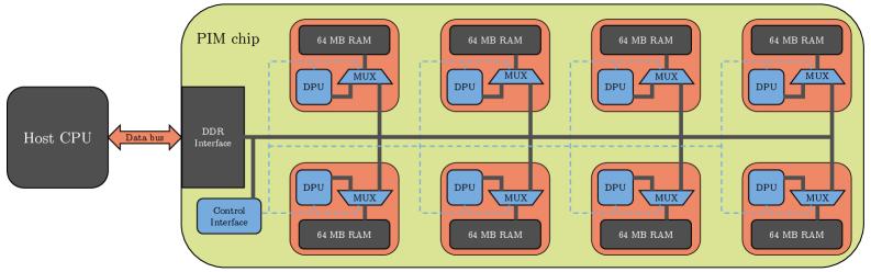 В статье объясняется приём для ускорения тяжёлых операций над зашифрованными данными путем выполнения вычислений прямо внутри памяти. Обычно такие операции требуют много времени и постоянной пересылки блоков между памятью и центральным процессором. Авторы разбили большую задачу на маленькие части и запустили их на множестве компактных процессоров, встроенных в модули памяти. Для умножения и других арифметических шагов они применили преобразования, которые превращают сложные полиномиальные операции в серию простых этапов, удобных для таких маленьких ядер. Это снижает количество пересылок данных и уменьшает потери энергии. В эксперименте предложенный подход показал заметный прирост скорости по сравнению с предыдущими решениями в памяти и по энергоэффективности стал сопоставим с хорошо оптимизированными центральными процессорами. Авторы указывают узкие места связанные с передачей блоков данных и предлагают простые аппаратные доработки для дальнейшего увеличения пропускной способности.