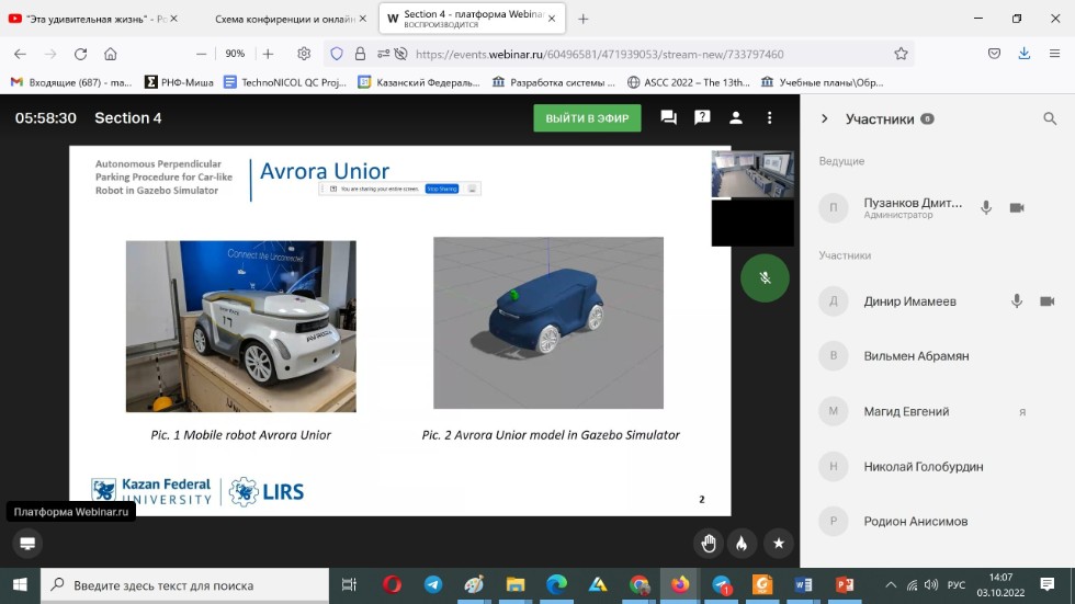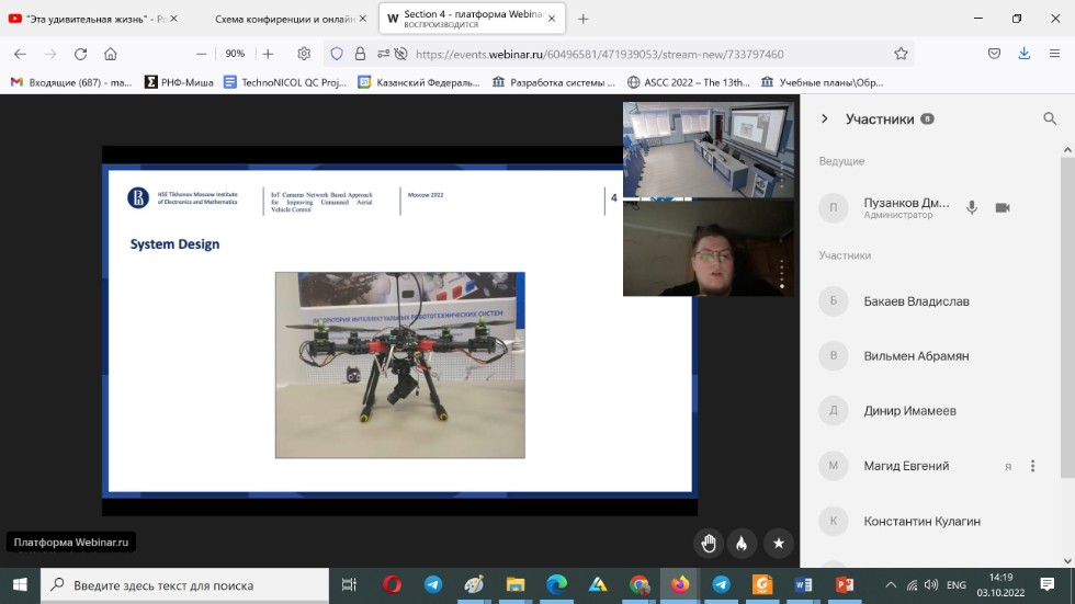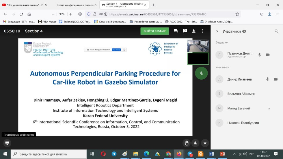 3 октября 2022 года руководитель Лаборатории Интеллектуальных Робототехнических систем (ЛИРС) профессор кафедры интеллектуальной робототехники Евгений Магид выступил в роли содокладчика двух презентаций на конференции. Основными докладчиками по результатам научных исследований, проведенных под его руководством, выступили выпускник бакалавриата Института Информационных технологий и интеллектуальных систем по специальности «Программная инженерия» Динир Имамеев и магистрант ВШЭ по специальности «Интернет вещей и киберфизические системы» Александр Дубельщиков.