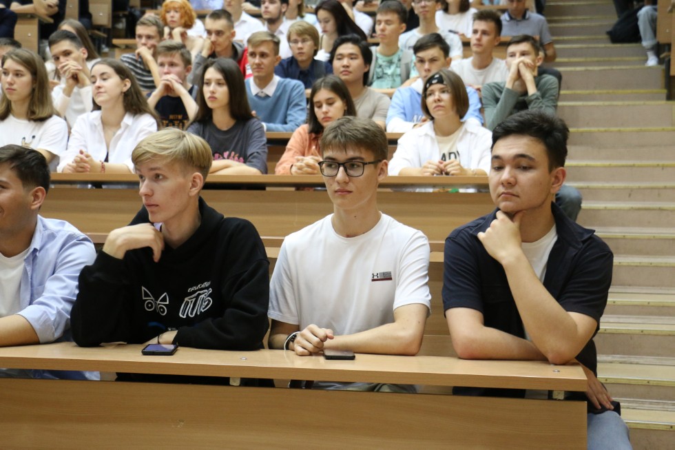 Сегодня на организационных собраниях первокурсников поздравил с Днём знаний проректор по цифровой трансформации и инновационной деятельности Казанского (Приволжского) федерального университета Дмитрий Пашин.
