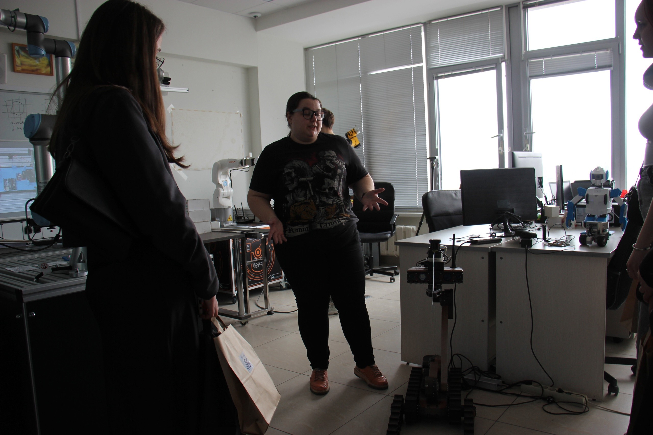 12 апреля 2025 года в Институте информационных технологий и интеллектуальных систем (ИТИС) Казанского федерального университета (КФУ) прошел Единый день открытых дверей. В рамках мероприятия будущие абитуриенты посетили Лабораторию интеллектуальных робототехнических систем (ЛИРС). Сотрудники лаборатории Александра Доброквашина и Айдар Загиров показали ребятам, чем занимаются в лаборатории и над какими работают проектами. Также они ответили на вопросы школьников: как попасть в лабораторию, как студенты работают с роботами и чем занимаются студенты после выпуска.