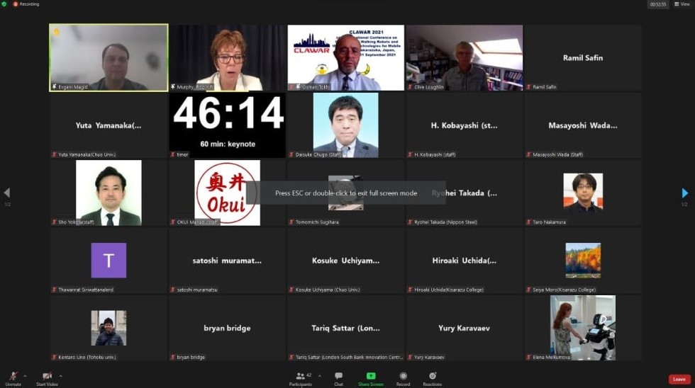 Сотрудники и студенты Лаборатории интеллектуальных робототехнических систем (ЛИРС) Института информационных технологий и интеллектуальных систем (ИТИС) КФУ приняли участие в XXIV Международной конференции по карабкающимся и шагающим роботам и технологиям поддержки мобильных машин (24th International Conference Series on Climbing and Walking Robots and the Support Technologies for Mobile Machines, CLAWAR 2021), которая проходит с 30 августа по 1 сентября 2021 года. В этом году конференция снова прошла в дистанционном (виртуальном) формате ввиду эпидемиологической ситуации. Мероприятие организовано Ассоциацией CLAWAR совместно с Университетом Квансей Гакуин (Kwansei Gakuin University, KGU), Такарадзука, Япония.