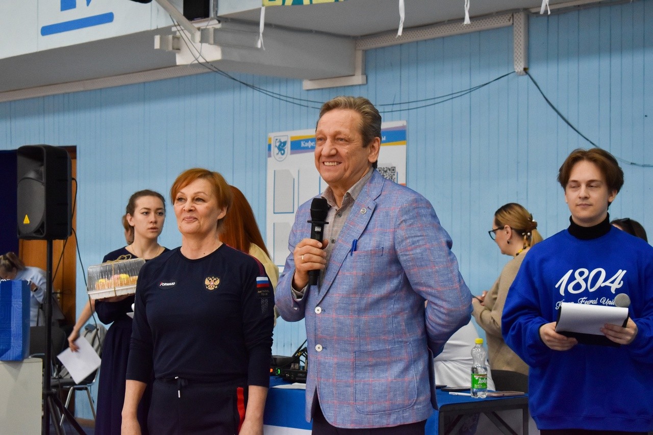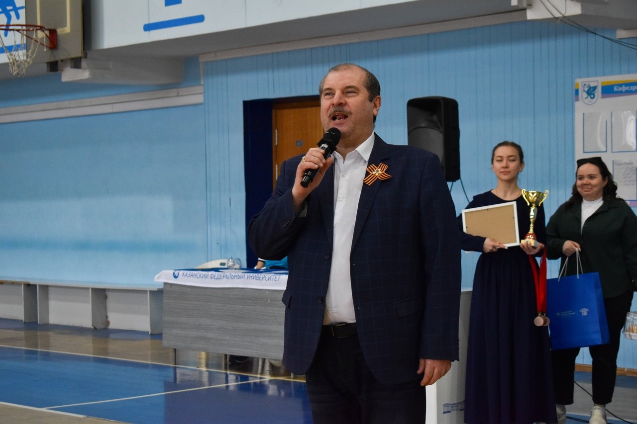 На мероприятии присутсвовали проректор по молодежной политике и воспитательной деятельности КФУ Ариф Межведилов, директор Департамента по молодежной политике, социальным вопросам и развитию системы физкультурно-спортивного воспитания КФУ Юлия Виноградова и директор Дирекции социально-спортивных объектов КФУ Александр Луконин.