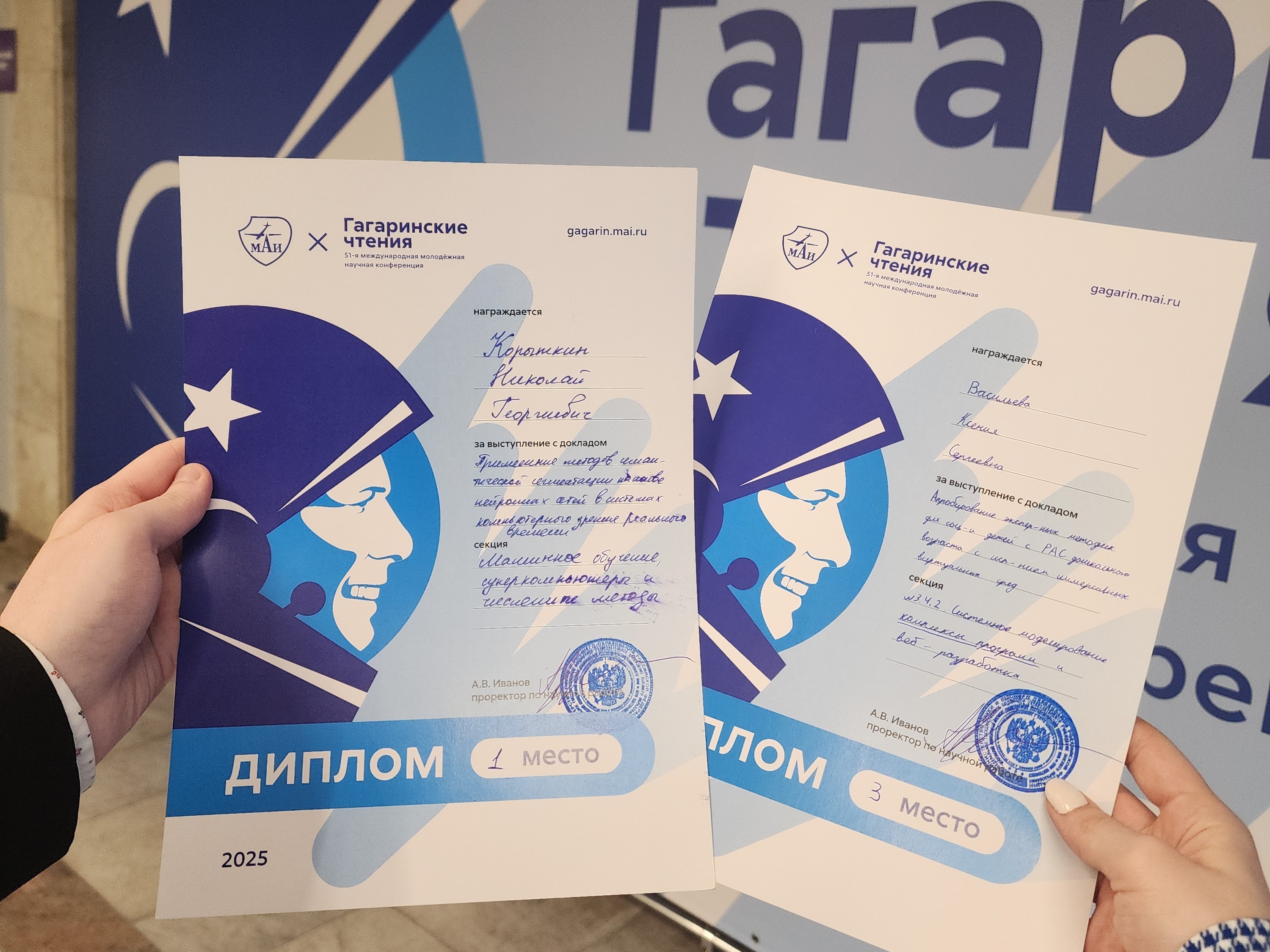 Магистрант 1 курса ИТИС Ксения Васильева стала призёром в секции "Системное моделирование, комплексы программ и веб-разработка" с докладом «Апробирование экспериментальных методик для социализации детей с РАС дошкольного возраста с использованием иммерсивных виртуальных сред» на 51-ой Международной молодёжной научной конференции «Гагаринские чтения» в Московском авиационном институте.