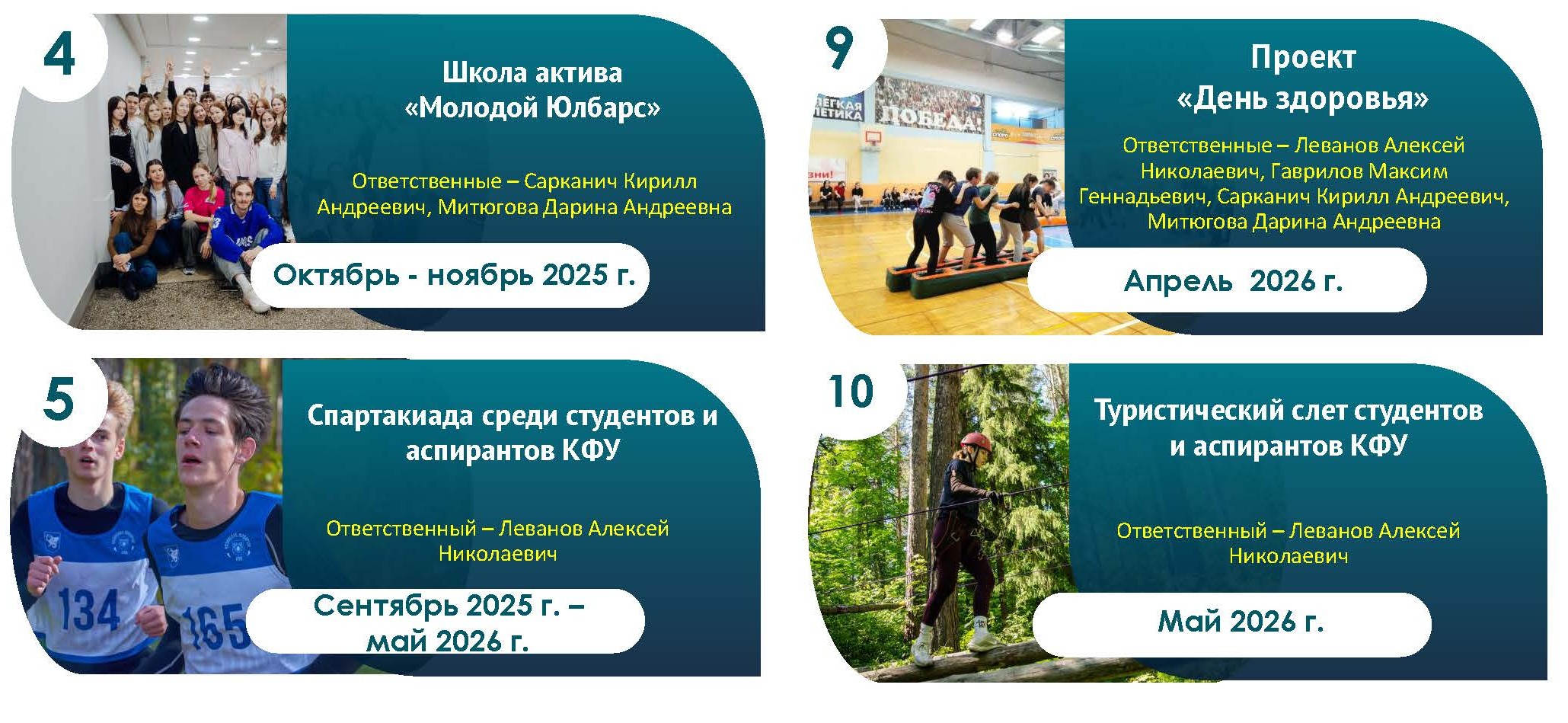 - Координация деятельности студенческого спортивного клуба КФУ "Казанские юлбарсы"
