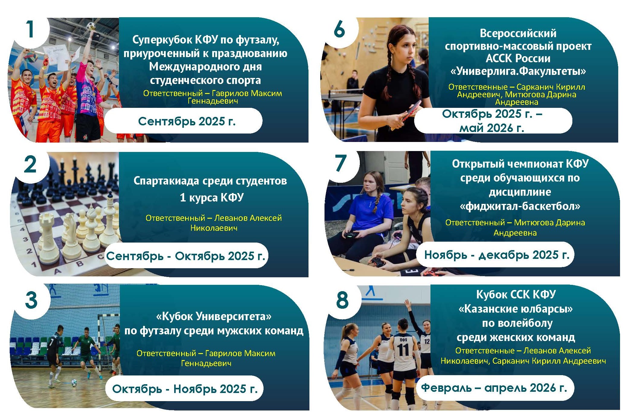 - Координация деятельности студенческих сборных команд КФУ по видам спорта
