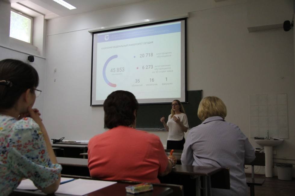 Департамент по молодежной политике КФУ совместно с Центром повышения квалификации с 1 по 15 июня проводят курсы для профессорско-преподавательского состава КФУ по программе «Психолого-педагогические основы организации работы со студенческой молодежью в новых социокультурных условиях». В 2019 году программа курсов обновлена, для проведения занятий привлечены ведущие специалисты: психологи, педагоги, социологи. В этом учебном году на курсах данного тематического направления обучаются 66 преподавателей различных образовательных подразделений КФУ.