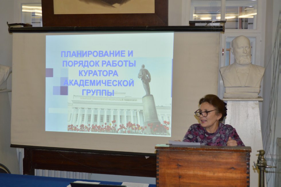 27 октября 2016 года в Бутлеровской аудитории музея Казанской химической школы КФУ состоялся обучающий семинар для начинающих кураторов академических групп по проблеме «Планирование и порядок работы куратора академической группы». В мероприятии приняли участие более 50 молодых кураторов Казанского университета.