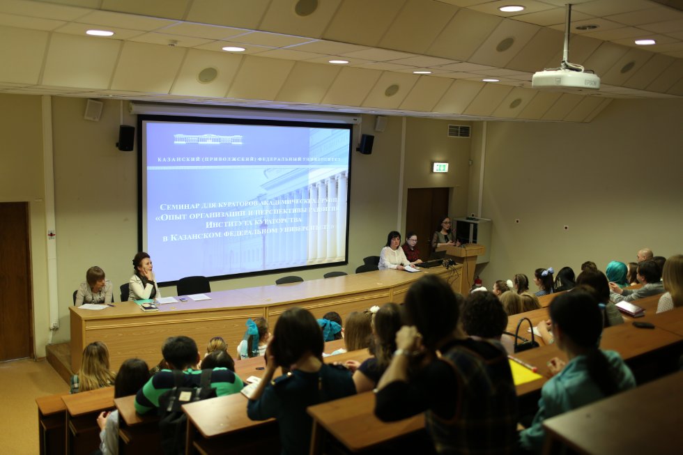 8 апреля 2016 года в Институте филологии и межкультурной коммуникации прошел семинар для молодых кураторов академических групп. Мероприятие началось с посещения выставки творческих работ студентов Института филологии и межкультурной коммуникации и мастер-класса от старших кураторов. По экспозициям выставки этнографического дизайна молодых кураторов сопровождал заместитель директора по социальной и воспитательной работе Расых Фарукович Салахов. Он подробно рассказал о тех народных промыслах, которые возрождаются в институте, благодаря деятельности студентов во внеучебное время, особое внимание уделяется промыслам Поволжья. Участники мастер-класса в лице студентов были в национальных костюмах и демонстрировали свое мастерство, этими промыслами могут заниматься студенты и других подразделений.