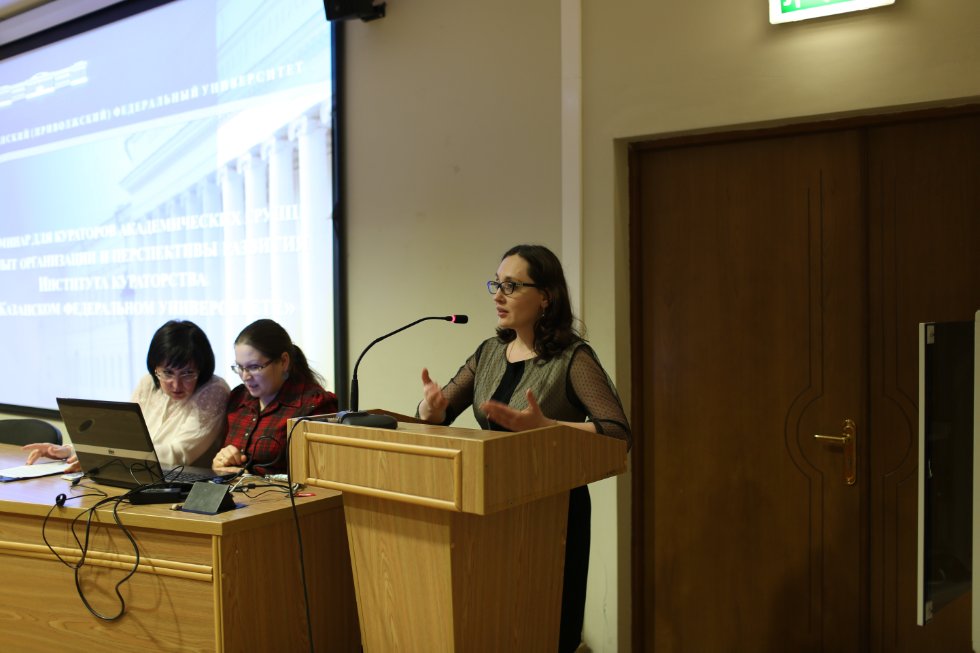 Лера Ахтямовна Камалова, куратор Института психологии и образования, обладатель звания «Лучший куратор академической группы», поделилась опытом организации работы куратора в академической группе. Выступление сопровождалось художественным представлением студентов группы.
