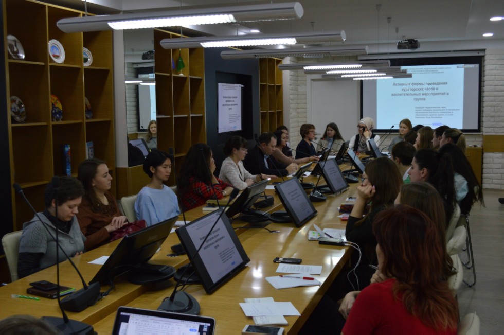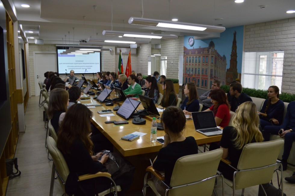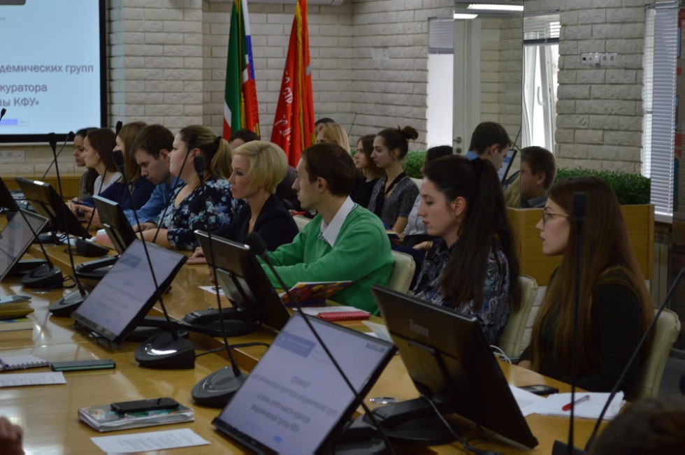 24 октября 2018 года в Центре деятельности молодежных общественных организаций и объединений КСК КФУ «УНИКС» для начинающих кураторов академических групп в онлайн режиме, с видеоподключением Елабужского и Набережночелнинского институтов, прошел обучающий семинар «Основы деятельности куратора академической группы КФУ». В этом учебном году 65 молодых преподавателей и сотрудников университета, помимо своей основной деятельности, будут выполнять обязанности академруководителя группы.