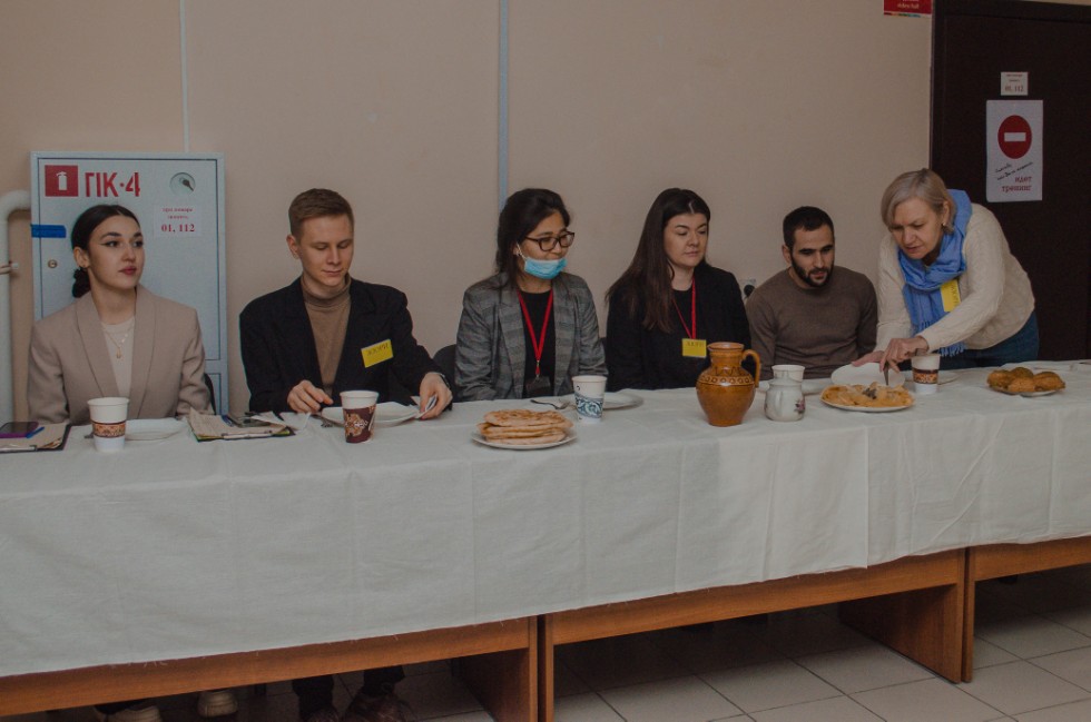 1/3 дом тепло встретил не только членов жюри, но и корреспондентов – ребята сделали мини-город из бумаги, им рассказали легенду о великане и крестьянине и угостили традиционными блюдами народа Марий Эл, такими как «кровяная колбаса», «пулашкамуно» и «подкоголь». Беляк Анэлия и Делис Виктория выразили свою благодарность «всем, кто помогал в оформлении и готовке. Все готовилось за 1,5 дня и дружба была главным нашим помощником. Было тяжело, но все справились благодаря дружному коллективу».