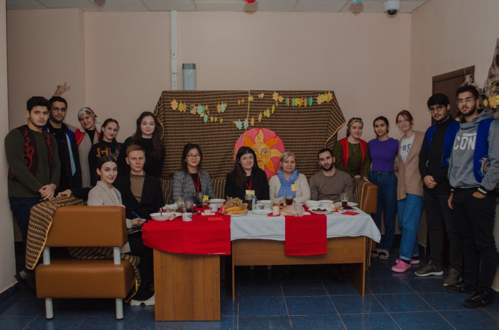 Дом 3/2 представил кухню кумыкского народа – история и традиции кумыков, национальный танец и традиционные «шурпа», «курзе» и «долма» и, конечно, история этих блюд. И тут участники не отпустили жюри с пустыми руками: ребята подготовили судьям гостинцы и вручили им в конце представления. Газитдинова Ляйсан и Кадырова Сабина поделились: «Хоть и мало активистов, среди которых большинство иностранцев, все равно дом очень дружный и помогали друг другу все».