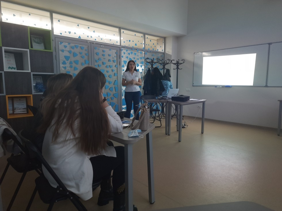 На встрече специалистка рассказала о важности карьерного развития, прохождении дополнительных обучений и получении новых компетенций. Анна Александровна также раскрыла тему мотивации и поощрения компаниями целей и достижений сотрудников на примере «Сбера».