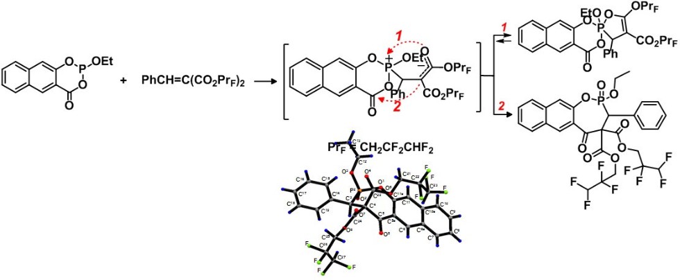 Реакция 2-этоксинафто[2,3-d]-1,3,2-диоксафосфорин-4-она с бис(2,2,3,3-тетрафторпропиловым) эфиром 4-бромбензилиденмалоновой кислоты