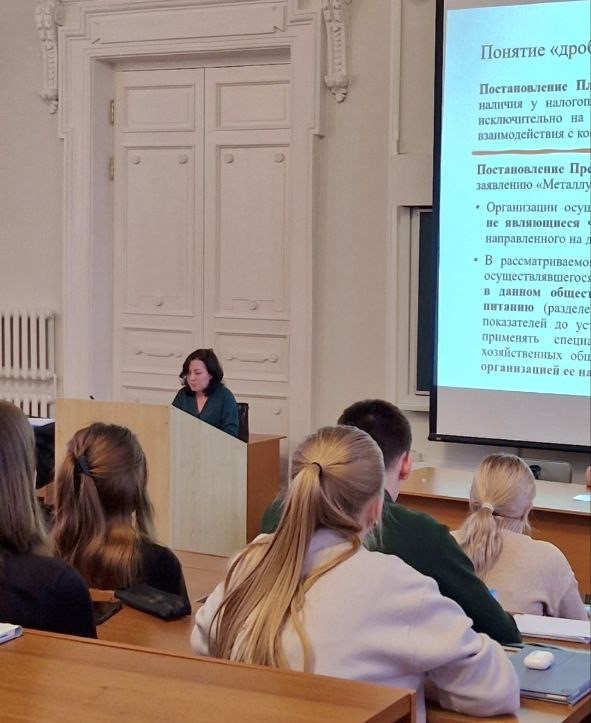 В целях актуализации и углубления профессиональных компетенций в сфере налогового права среди студентов, юридический факультет КФУ организовал проведение бинарной лекции на тему "Правовые подходы к дроблению бизнеса. Налоговая амнистия" с участием начальника правового отдела УФНС РФ по Республике Татарстан Красильниковой Альбины Мухтаровны и преподавателей кафедры конституционного и административного права юридического факультета КФУ, д.ю.н., профессора Хусаинова Зуфара Фаатовича и к.ю.н. доцента Файзрахмановой Лейсан Миннуровной.