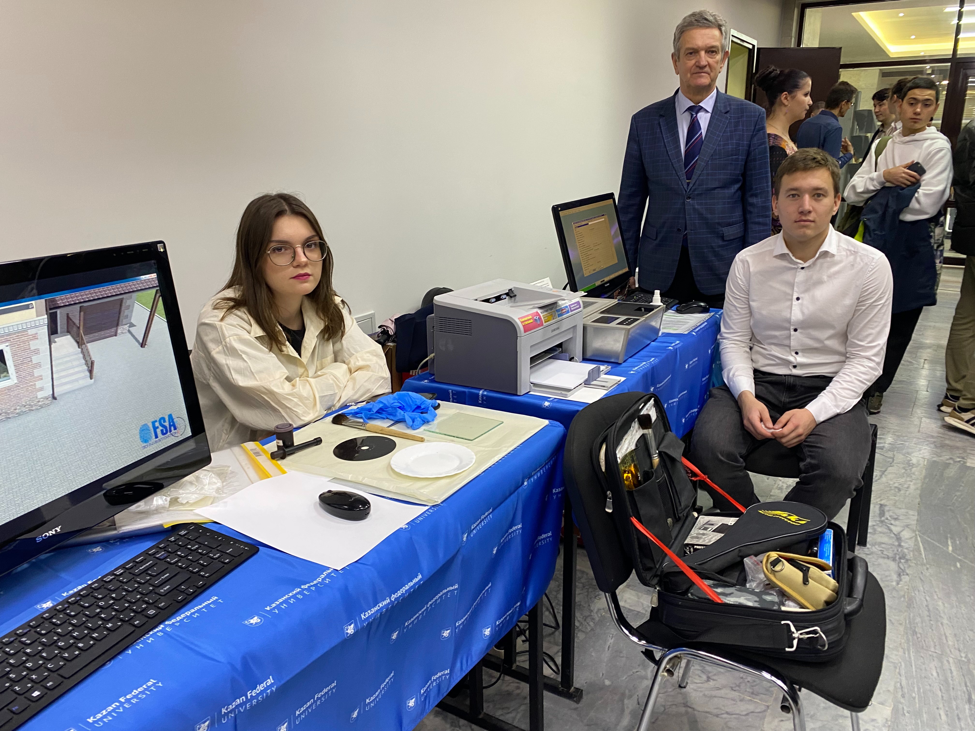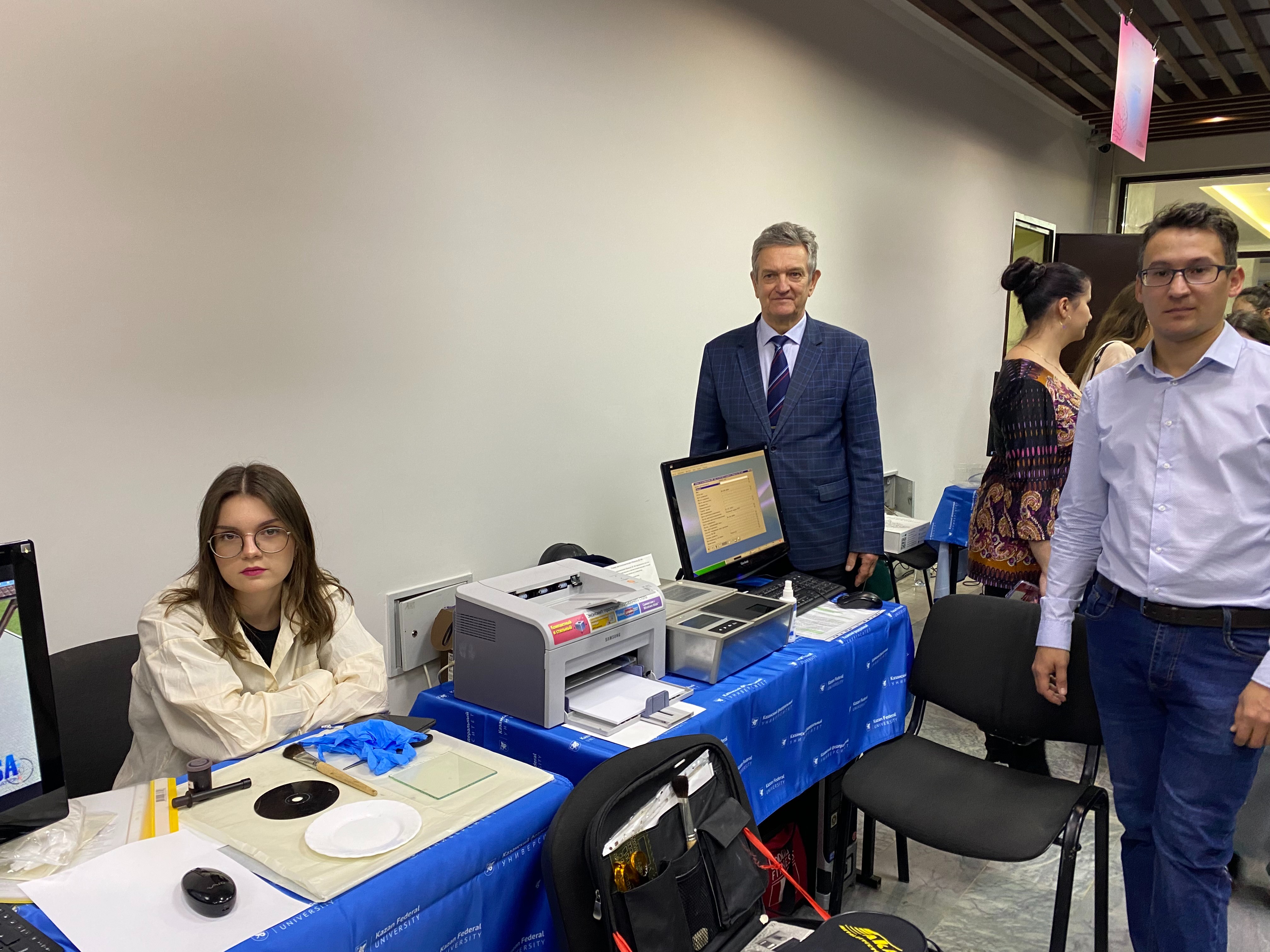 10 ноября во втором учебном корпусе КФУ прошла XVII серия научно-популярного проекта «PROНаука в КФУ» под названием «КОД(Т): УЧЕНЫЙ». Она ознаменовала старт серии мероприятий, посвященных празднованию 220-летия Казанского университета. Сотрудники учебной криминалистической лаборатории юридического факультета и члены научного студенческого кружка (гр.08-008) Айнур Абдуллин, Кристина Киселева и магистрант Дарья Лобашова приняли активное участие в данном мероприятии. Посетителям было предложено поработать с дактилоскопическим сканером, обнаружить и изъять отпечатки пальцев рук, создать субъективный портрет, провести виртуальный осмотр места происшествия и виртуальный обыск.