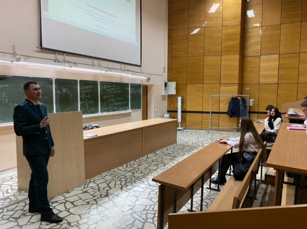 6 апреля 2021 года в 108 аудитории 2 корпуса КФУ состоялась бинарная лекция у студентов 4 курса очного отделения по дисциплине «Земельное право» с участием начальника управления государственной инспекции экологического надзора Министерства экологии и природных ресурсов РТ Полюшко А.С. В ходе встречи со студентами Алексей Сергеевич представил презентацию о работе Минэкологии РТ, выступил с докладом о практике применения действующего природоохранного законодательства и ответил на многочисленные вопросы студентов, в том числе и по вопросу трудоустройства