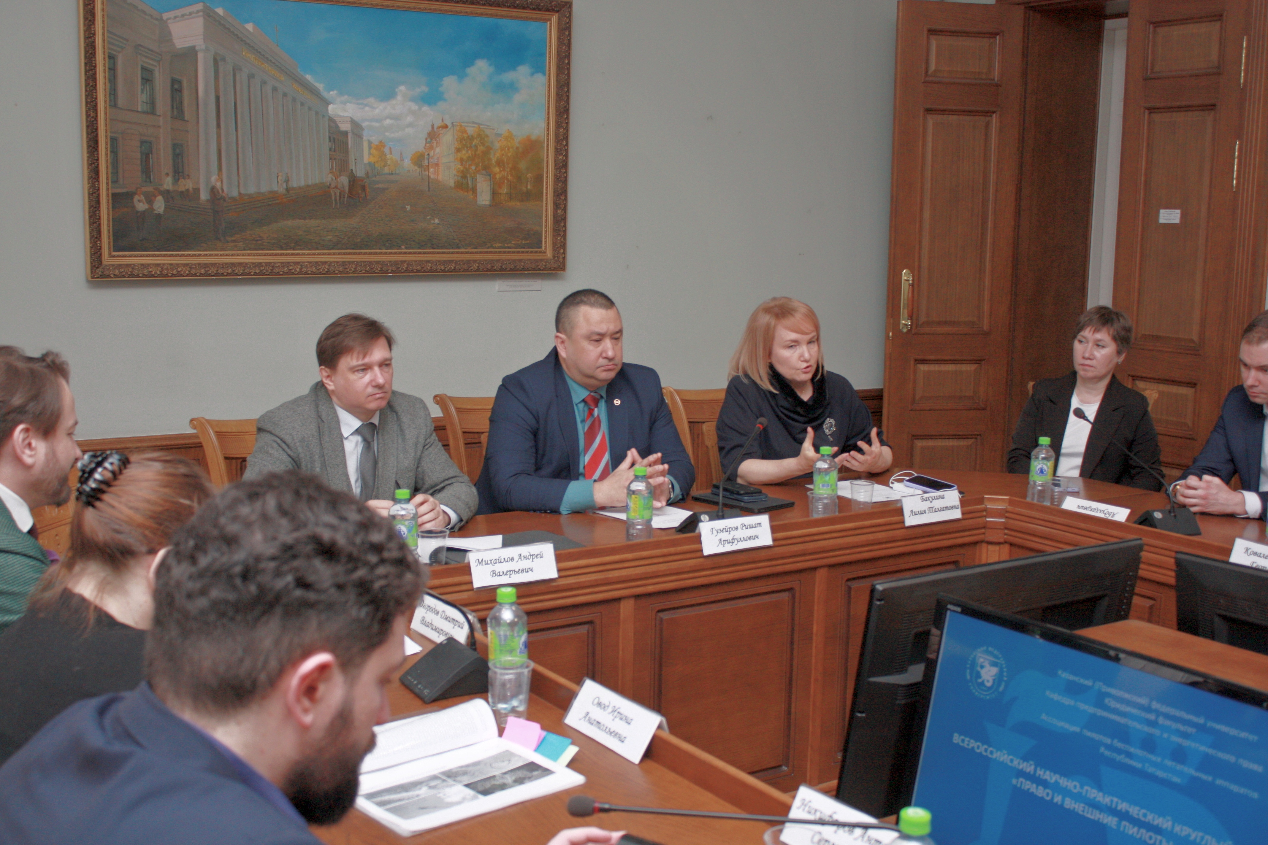 С приветственным словом к участникам круглого стола обратились проректор по комплексной безопасности Казанского (Приволжского) федерального университета Гузейров Ришат Арифуллович, декан Юридического факультета КФУ, профессор Лилия Талгатовна Бакулина, заведующий предпринимательского и энергетического права, доцент Андрей Валерьевич Михайлов, организатор круглого стола Дмитрий Владимирович Огородов.