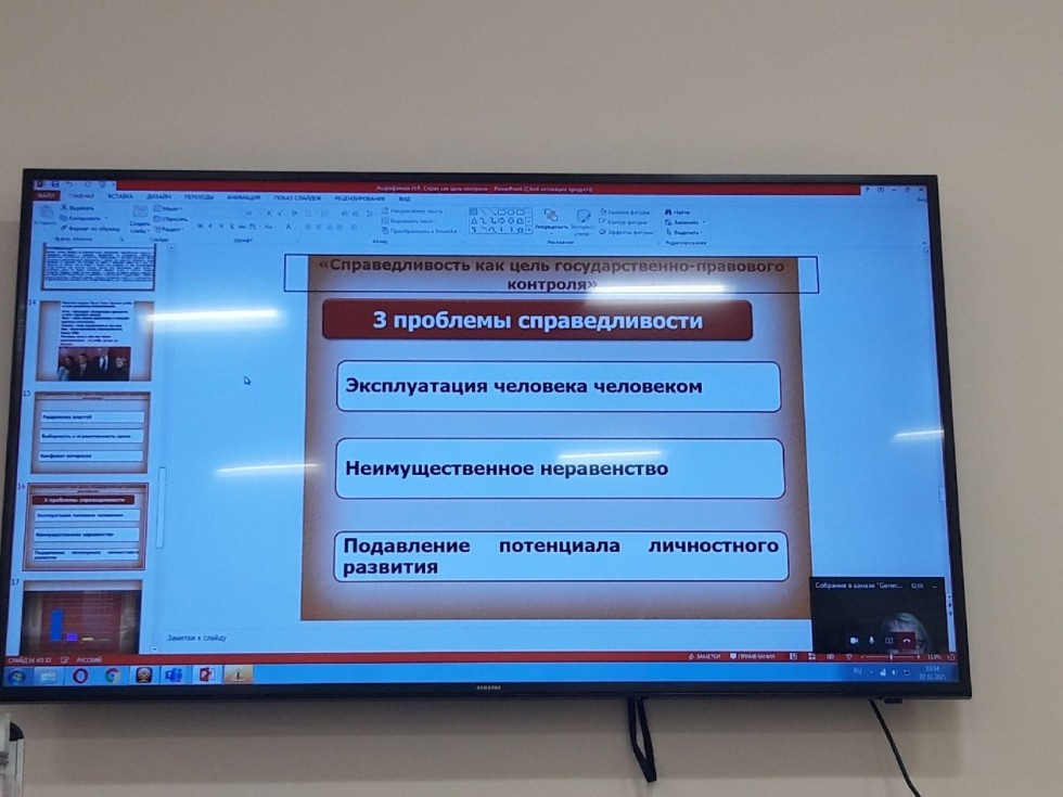 7 декабря во исполнение Распоряжения декана юридического факультета от 23.11.2021 г. №0.1.2.08.1.01-04/114 об обеспечении формирования у обучающихся по программе аспирантуры компетенций было проведено в очно/заочном формате расширенное заседание студенческой научной лаборатории «Проблемы теории государства и права», на котором с докладом на тему «Справедливость как цель государственно-правового контроля» выступил аспирант кафедры теории и истории государства и права Ашрафзянов Ильшат Радифович.
