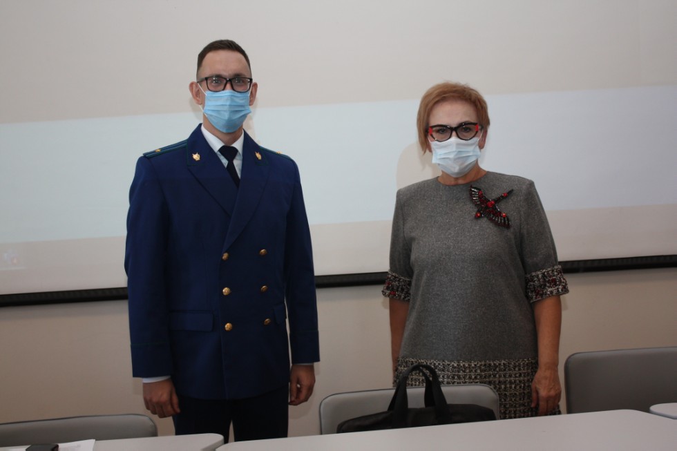 14 октября 2021 года в стенах Казанского федерального университета для студентов третьего курса Юридического факультета к.ю.н., доцентом, Заслуженным юристом Республики Татарстан, доцентом кафедры уголовного процесса и криминалистики Юридического факультета КФУ Клюковой Мариной Евгеньевной и старшим помощником прокурора Советского района города Казани, младшим советником юстиции Вавилиным Михаилом Владимировичем была прочитана бинарная лекция на тему: «Роль органов прокуратуры в укреплении законности и правопорядка: история и современность», в рамках которой были затронуты вопросы возникновения и развития прокуратуры в России, а также рассмотрены ее функции и полномочия на современном этапе. После окончания бинарной лекции студенты задавали многочисленные вопросы, на которые получили аргументированные ответы.