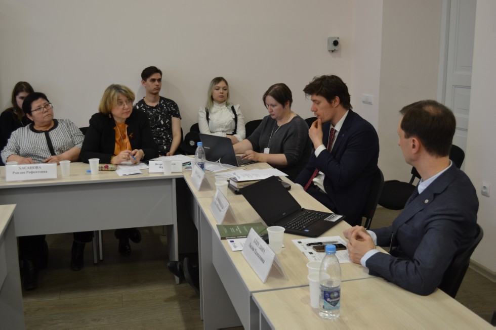 In the opening of the event took part the Dean of the Faculty of Law of KFU Lilia Talgatovna Bakulina, the academic coordinator of the Jean Monnet Centre of Excellence in European Studies “Voices+”, Vice Dean of the Faculty of Law of KFU on international activity Rustem Shamilievich Davletgildeev, Political Advisor on the issues of migration of the Delegation of the European Union in Russian Federation Adrian Georgiev, Head of the Office of migration issues of the Russian Federation Ministry of Internal Affairs in the Republic of Tatarstan Artem Alexandrovich Kuznetsov, Deputy Head of the Ministry of Justice of Russian Federation of the Republic of Tatarstan Ramsia Rafkatovna Khasanova, Secretary to the Mission of the Ministry of the Foreign Affairs of Russian on Kazan Radik Rafikovich Vakhitov, prosecutor of the Department for Monitoring the Compliance with legislation on the protection of the interests of the State in the Prosecutor's Office of the Republic of Tatarstan Ramil Kamilievich Akhmetsianov, Leading Specialist of the Office of the Ombudsman in the Republic of Tatarstan Adelia Khalimova, Member of the Council of the Bar of the Republic of Tatarstan Gumar Suleimanovich Akhmetov, Vice Head of the Assembly of Nations of the Republic of Tatarstan Council Nicolai Mikhailovich Vladimirov, Chief Editor of the journal “Labor Migrant” Zakir Akhmatovich Sariev, Head of the regional public organization “Centre of legal assistance to migrants and other social unprotected population groups of the Republic of Tatarstan” Gulia Gumarovna Balaphendieva.
