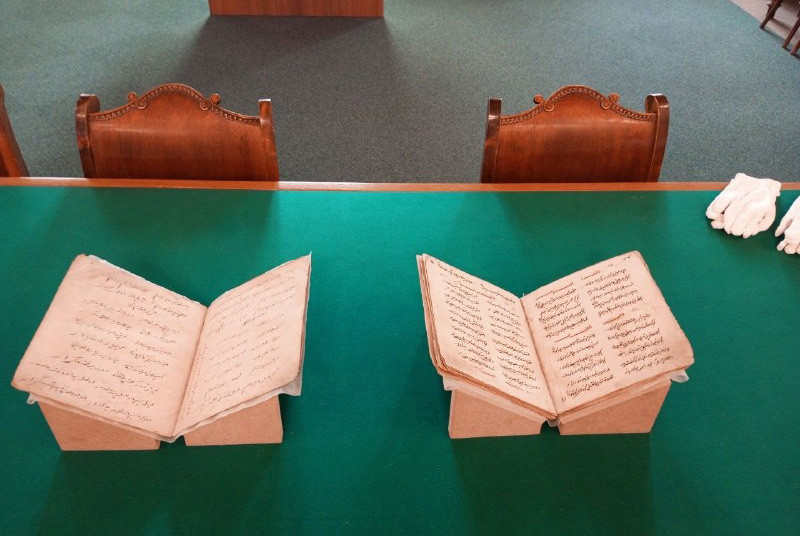 Из фондов Научной библиотеки им. Н.И. Лобачевского гостям была представлена рукопись с поэтическими произведениями юбиляра, записанными известным туркменским поэтом Мисгингылыч. Рукопись классика туркменской литературы Махтумкули Фраги была найдена в результате работы Археографической экспедиции Казанского университета под руководством историка и археографа М.А. Усманова на территории Астрахани в 1968 году.