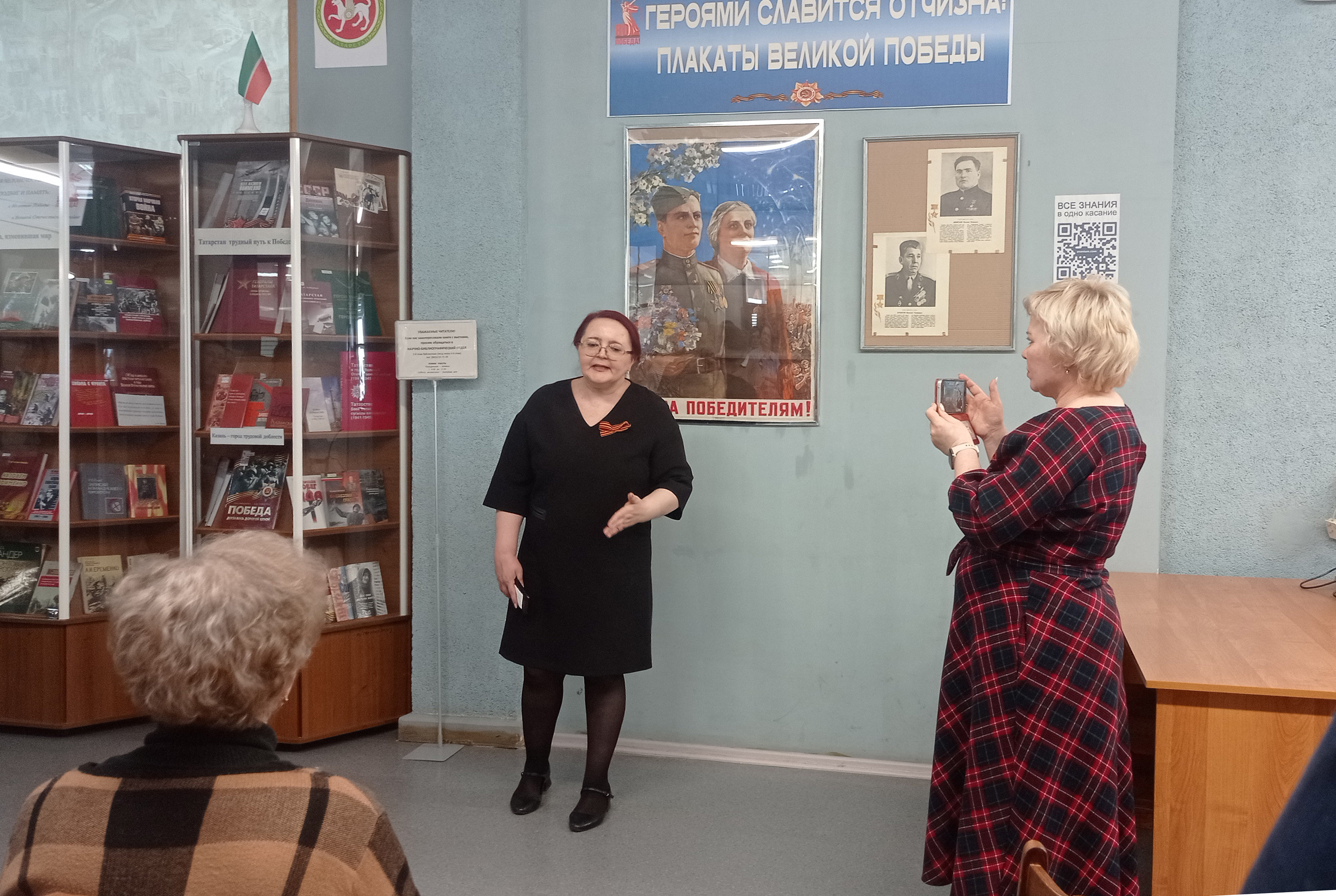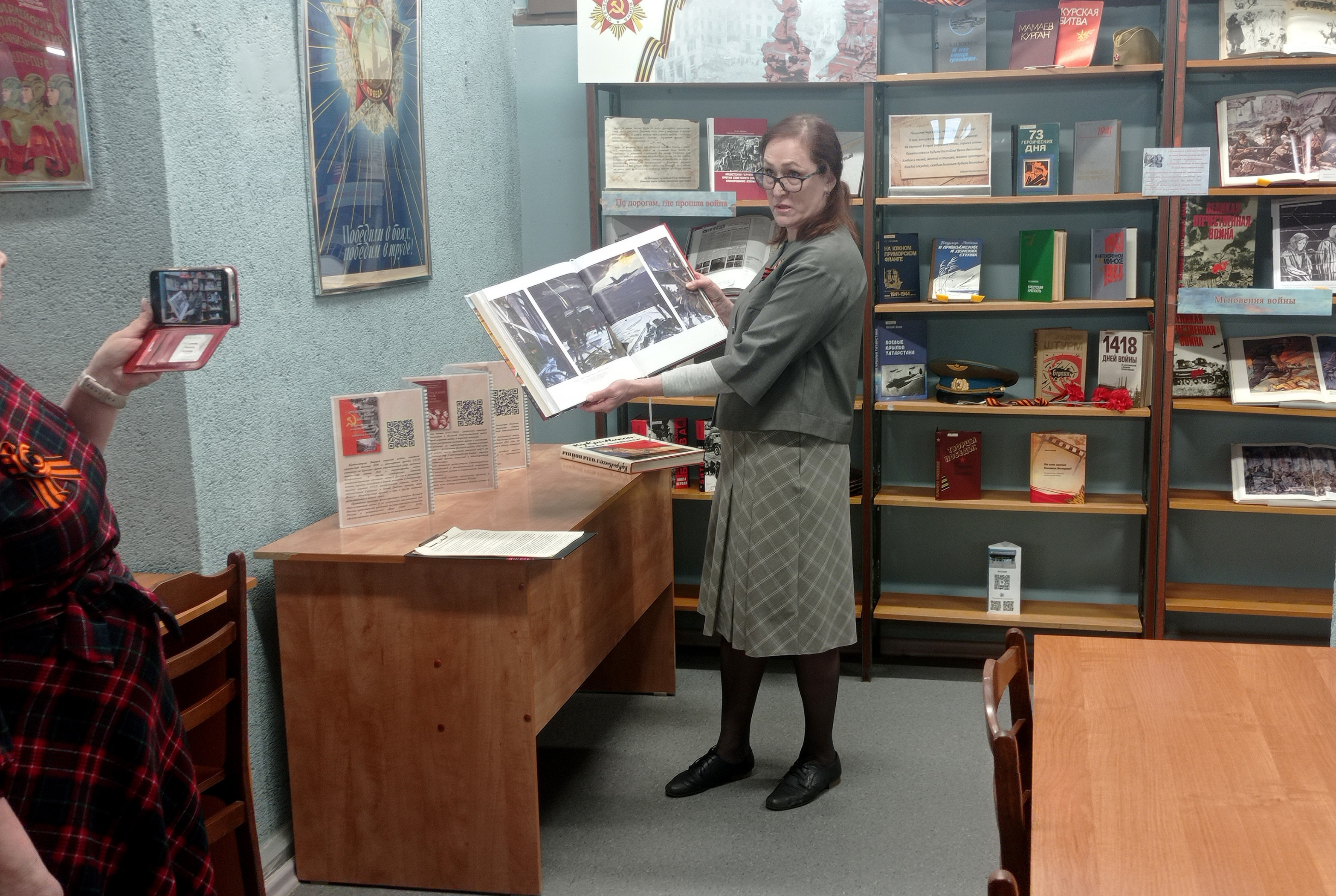 А.Г. Ахмеджанова, зав. сектором гуманитарно-просветительской работы, провела обзор выставки "Память великого подвига", посвященный книгам и предметам, относящимся к периоду Великой Отечественной войны. В разделе под названием "По дорогам войны" посетители ознакомились с изданиями, повествующими о беспримерном мужестве и героизме советских людей, а также ключевых сражениях, как битва за Москву, блокада Ленинграда, Сталинградская битва, сражение на Курской дуге и др. Раздел "Победа в сердце каждого" включает в себя воспоминания, мемуары, письма и дневниковые записи, отражающие ужасы военного времени. А репродукции картин, плакатов, фотографий, представленные в разделе "Мгновения войны", служат яркой и правдивой хроникой тех дней, передавая суровую реальность военного быта.