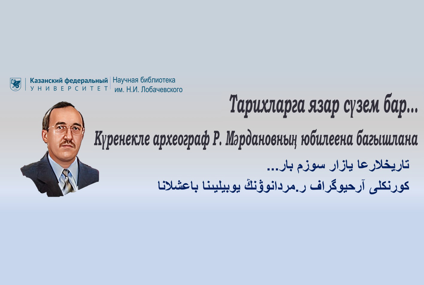 Н. И. Лобачевский исемендәге Фәнни китапханәдә күренекле тарихчы, археограф, каллиграф Р.Ф. Мәрдановның 60 еллык юбилее уңаеннан күргәзмә ачылды.