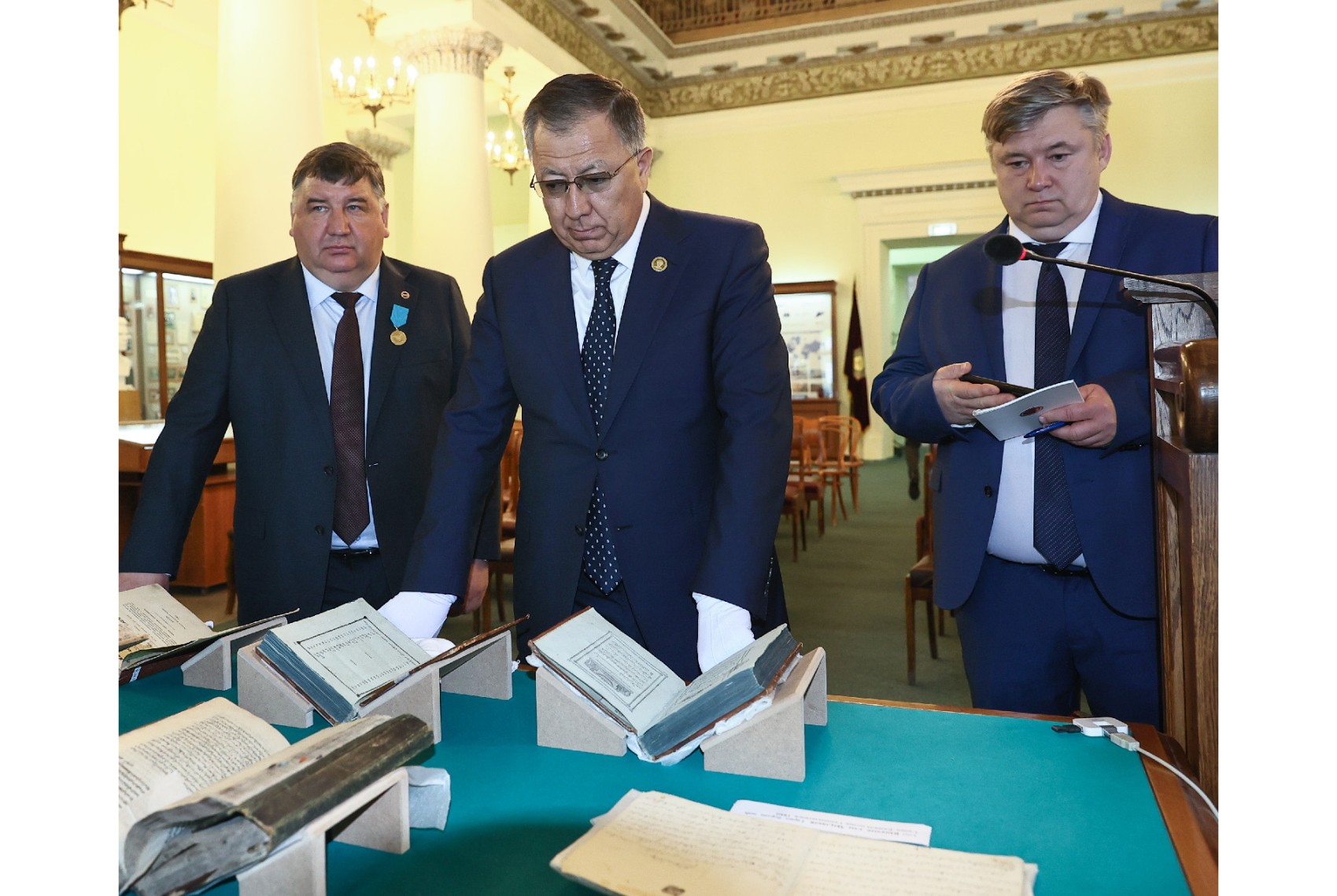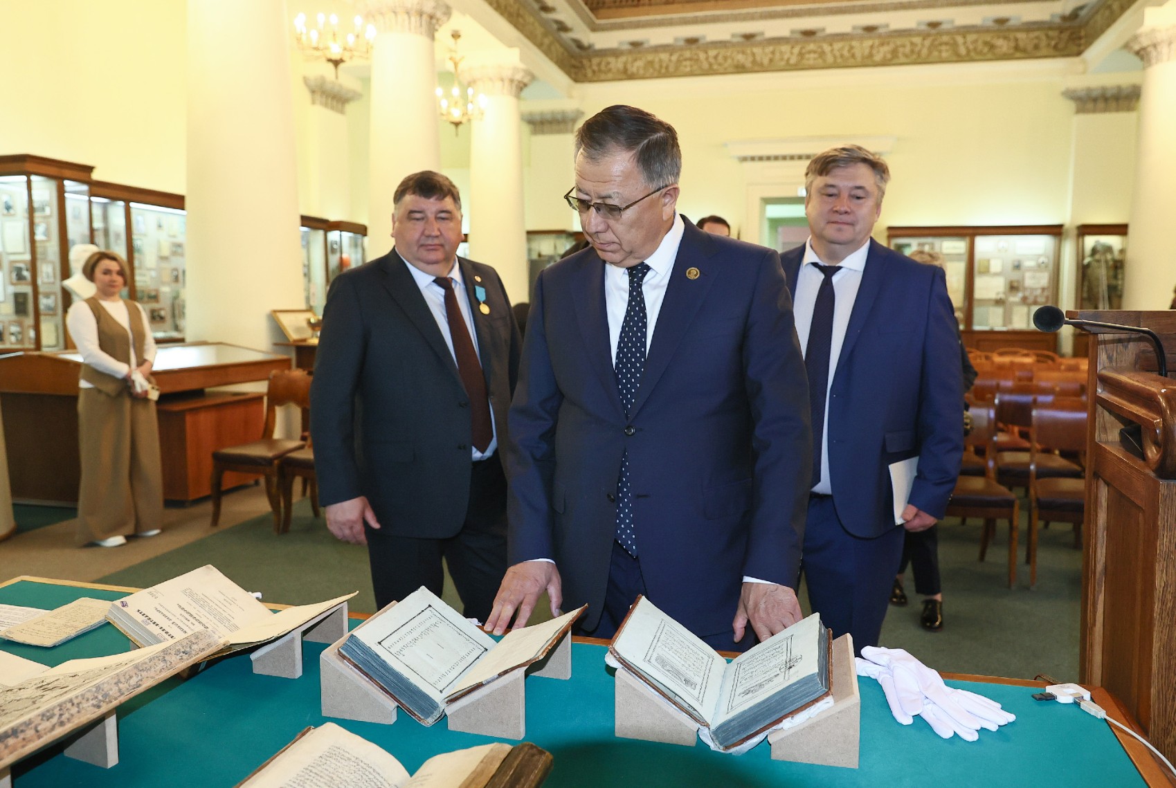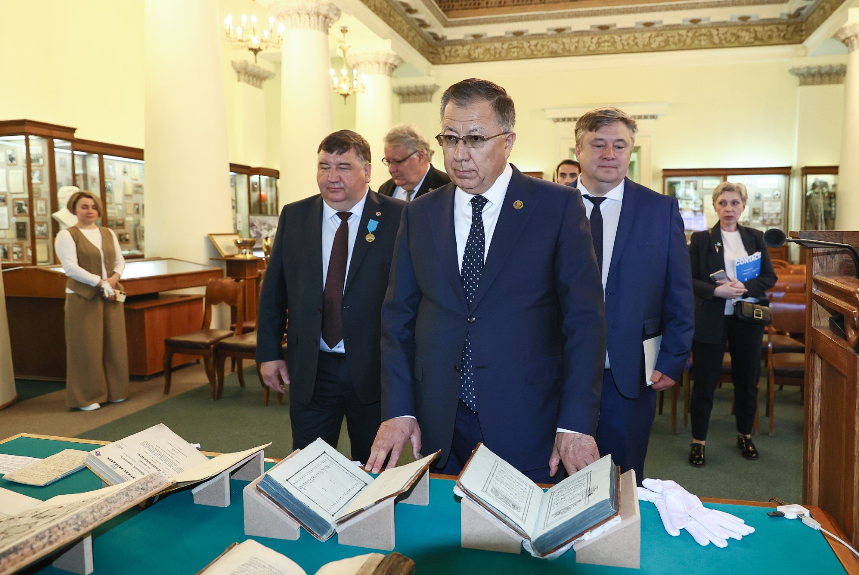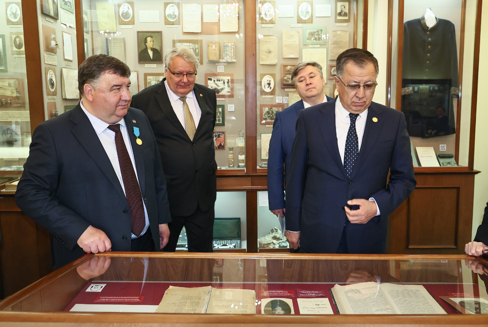 В Музее истории КФУ гостям и руководству КФУ были показаны раритеты, связанные с Казахстаном и мусульманским миром: первопечатный Коран в исламской традиции, изданный в Казанской гимназии в 1803 г., кодекс обычного права, одним из авторов которого был казахский просветитель и литератор Абай Кунанбаев, казахская поэма «Гарип берлән шаһ Санам» Юмачык улы Мәүликәя. Особый интерес у казахстанской делегации вызвали списки философских сочинений аль-Фараби, также представленных на выставке.