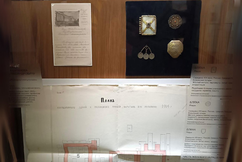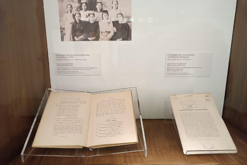 В экспозиции более 400 экспонатов, среди которых булгарское золото XII века, серебро эпохи Золотой орды, предметы быта, одежда, обувь, книги и журналы конца XIX века и знаменитый шамаиль, ставший феноменом татарской культуры. Часть из них предоставлена Научной библиотекой им. Н.И. Лобачевского и Этнографическим музеем КФУ.