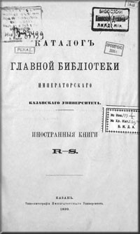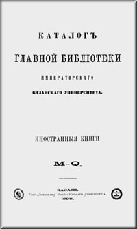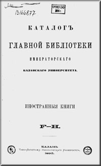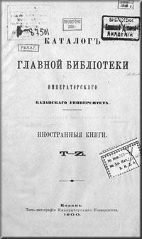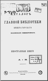 Каталог Главной библиотеки Императорского Казанского университета. Иностранные книги.\Каталоги - Казанский (Приволжский) федеральный университет