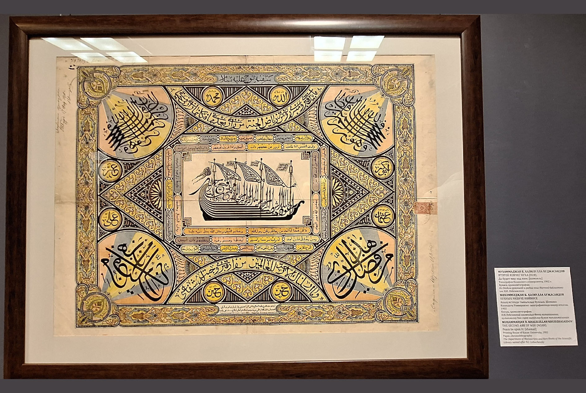 Из фондов Научной библиотеки имени Н.И. Лобачевского для выставки представлены восемь созданных в начале ХХ в. шамаилей, один из которых украсил афишу выставки. Эти произведения мусульманского искусства были напечатаны в типографии Императорского Казанского университета в 1901-1902 гг. Их авторами являются Мухаммаджан б. Халилулла Худжасаидов, Шакирджан б. Гайнулла Тимербаев и Гайфулла б. Музаффар.